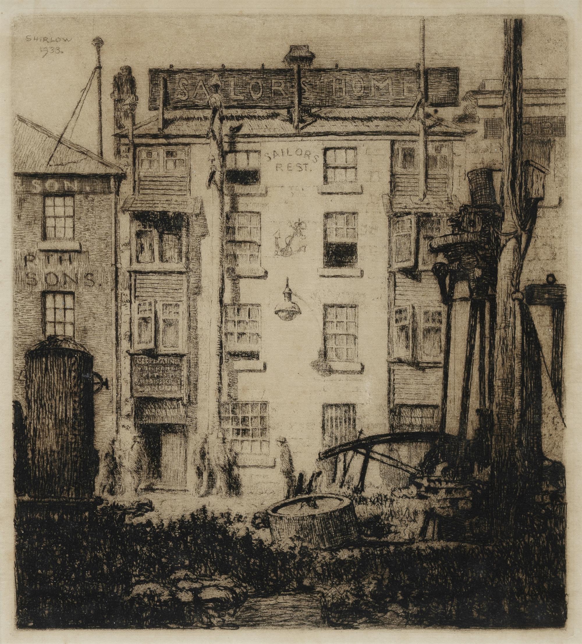 SHIRLOW, John (1869-1936) 'Sailors' Home [Hobart, Tasmania], 1933. Signed and dated in plate. Etching 23x20cmEstimate $80-150