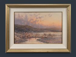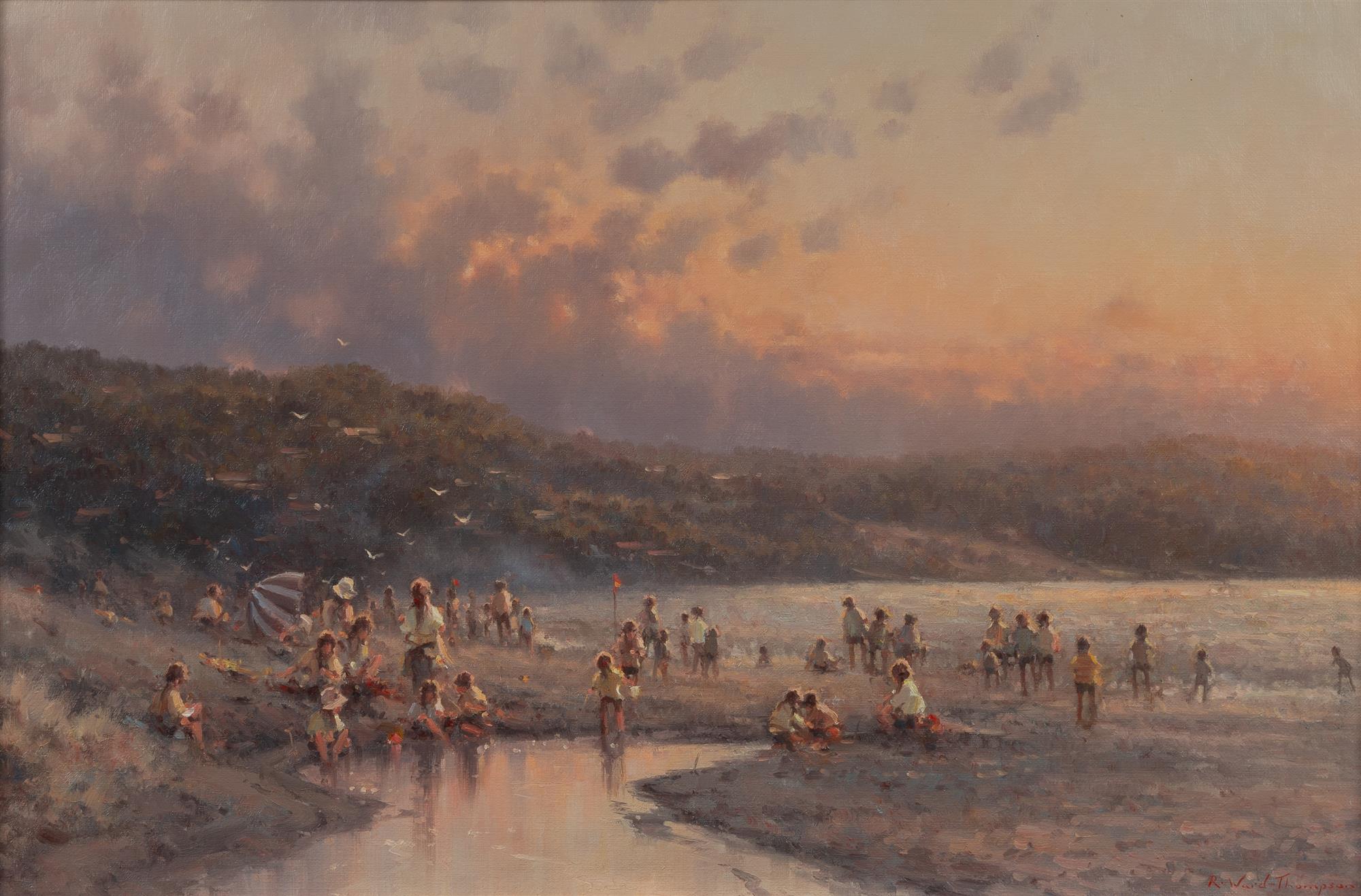 WARD-THOMPSON, Ramon (b.1941) Late Afternoon on the Beach Oil on Canvas on Board 48x74cmEstimate $600-1,000