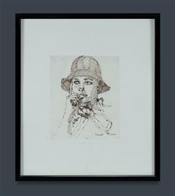 CASSAB, Judy (1920-2015) Study of the Artist Marina Finlay in Black Hat, 2000. Pen & Ink 19.5x16cmEstimate $100-200
