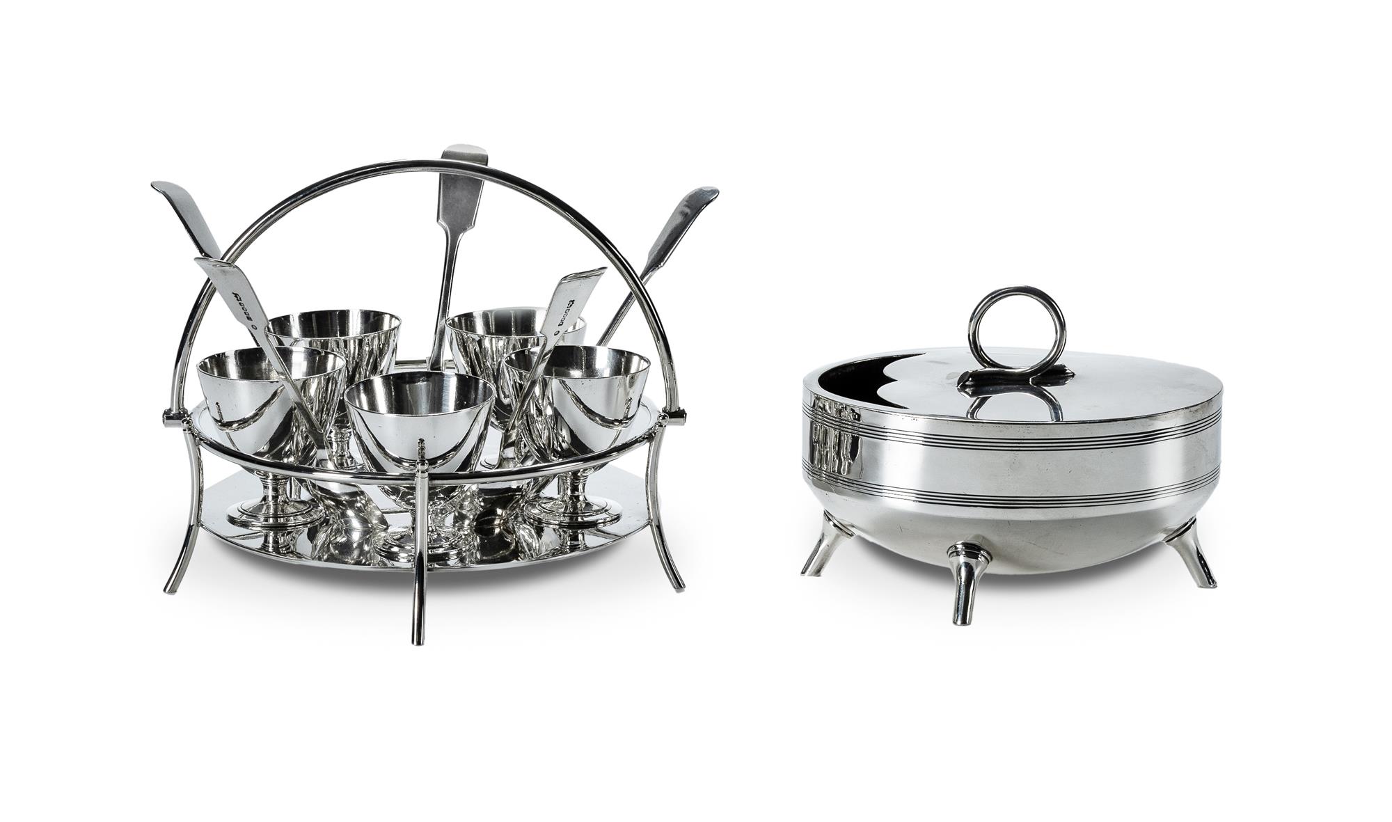 Henry Wilkinson Silver Plate Spoon Warmer. Together with a James Dixon egg cruet, both in the style of Christopher Dresser c.1880s.Estimate $50-100
