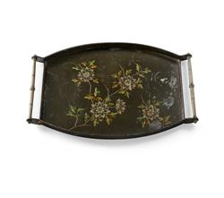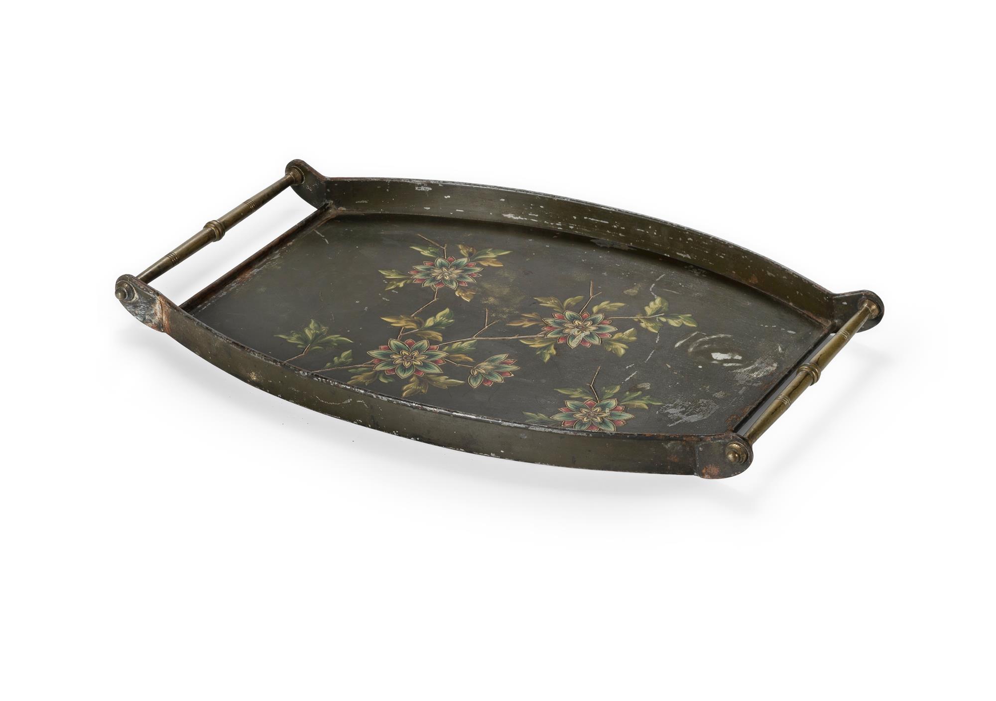 Attrib. Christopher Dresser, 'The Boudoir' Rd. 89612, Painted Tin and Brass Handled Tray c.1884. Probably manufactured by Perry & Co. Wolverhampton. (L53cm)Estimate $50-100
