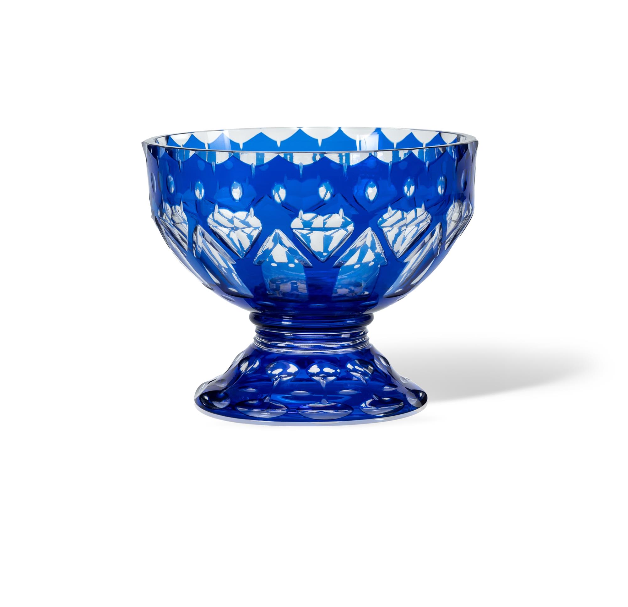 Austrian Secessionist Facet Cut Blue Overlay Glass Footed Bowl. Early 20th C. (Dia.21.5cm)Estimate $100-300