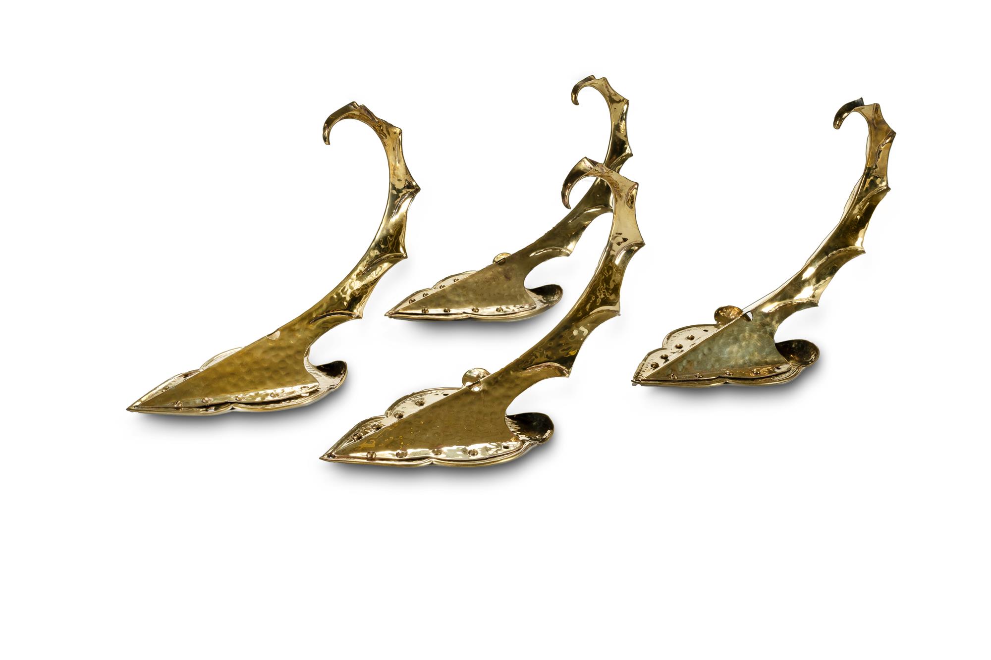 4 Arts & Crafts Hand Wrought Brass Wall Light Brackets