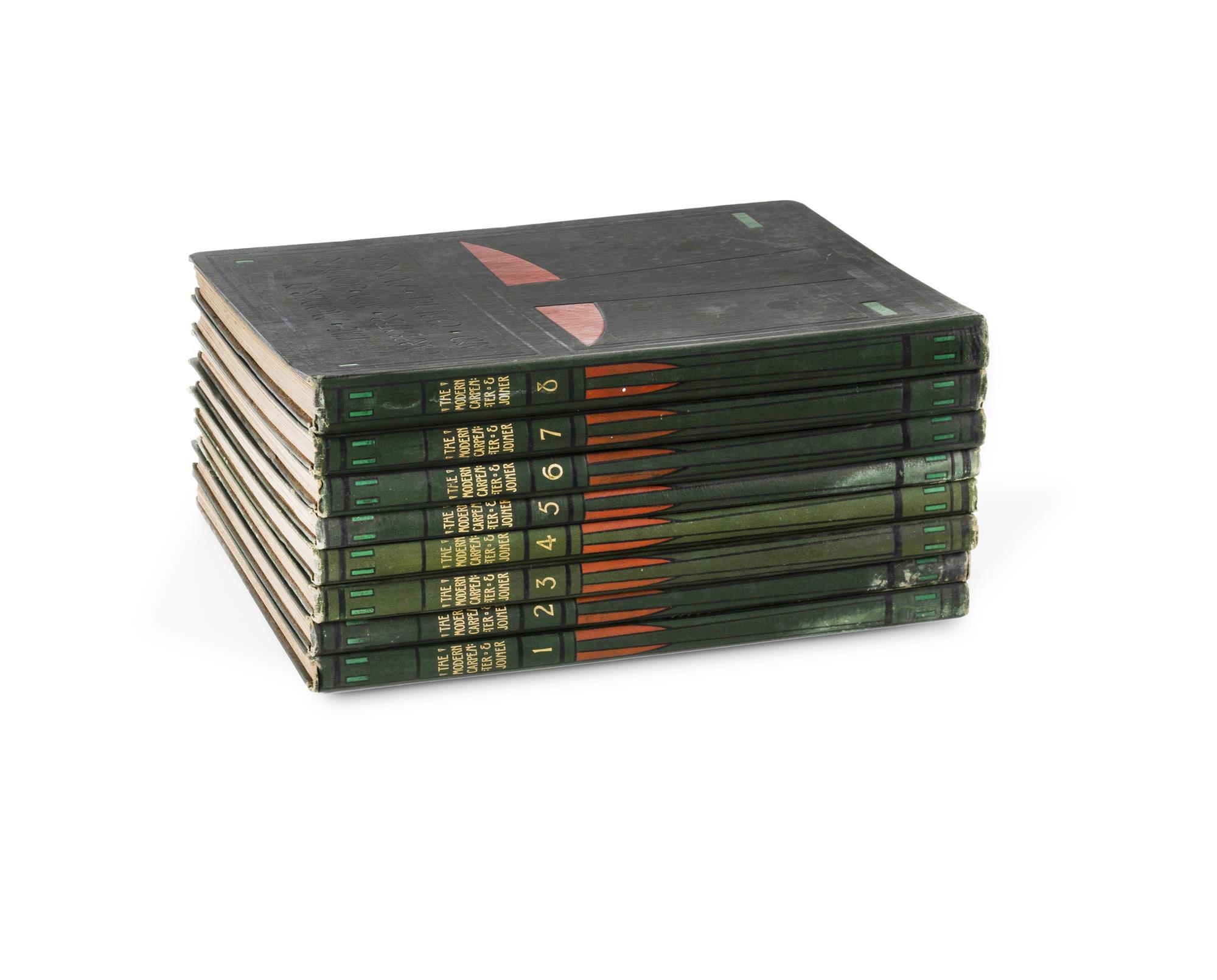 Glasgow School Style Bookbindings. By Talwin Morris (1865-1911) for Gresham Publishing Co. 'The Modern Carpenter and Joiner and Cabinet Maker', London 1903/4, 8 vols. (34.5x26cm)Estimate $50-100