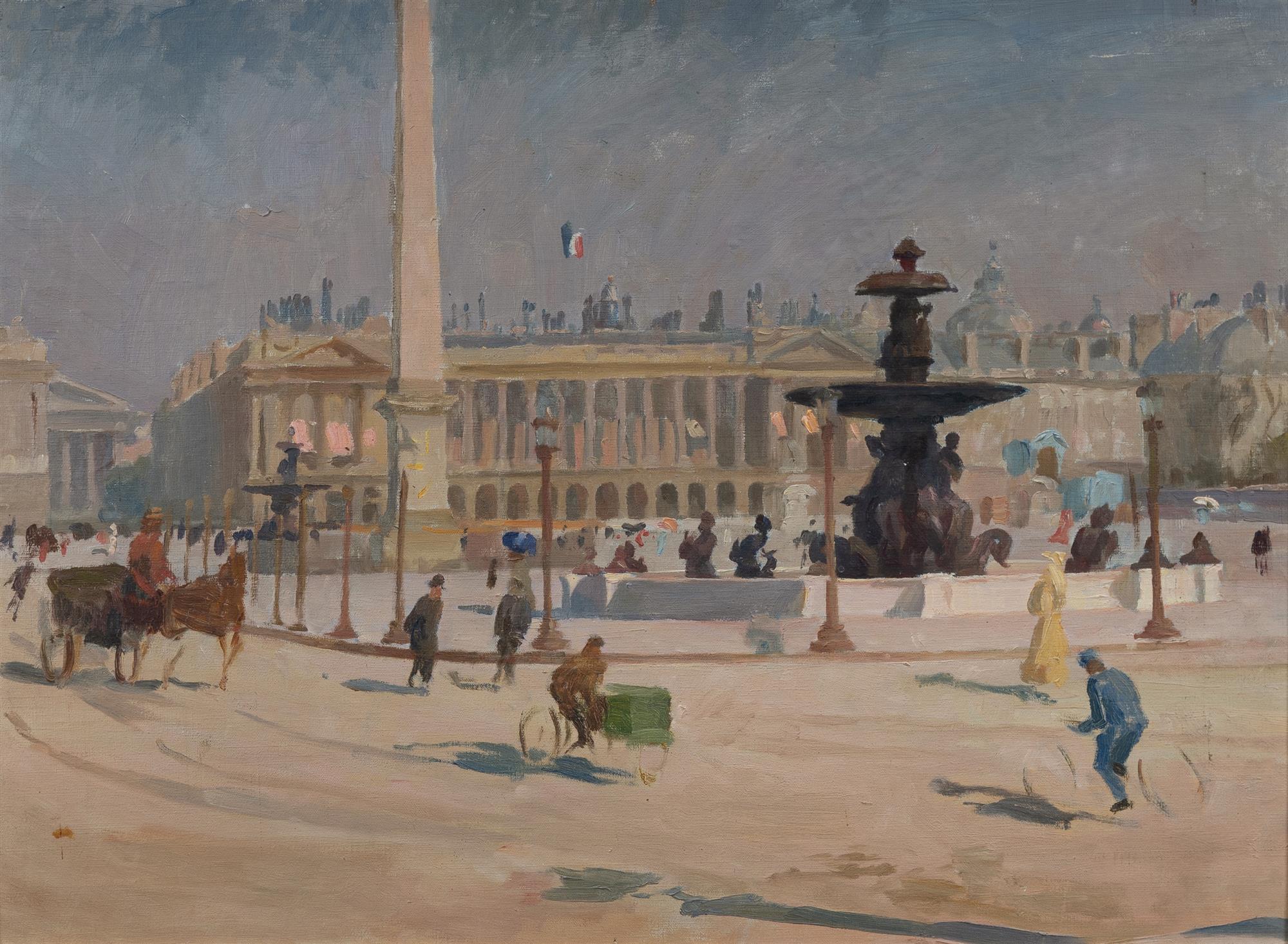 Artist Unknown Place de la Concorde, Paris. Unsigned. Remnants of Melbourne framer's label. Oil on Canvas on Board 44x58.5cmEstimate $200-400