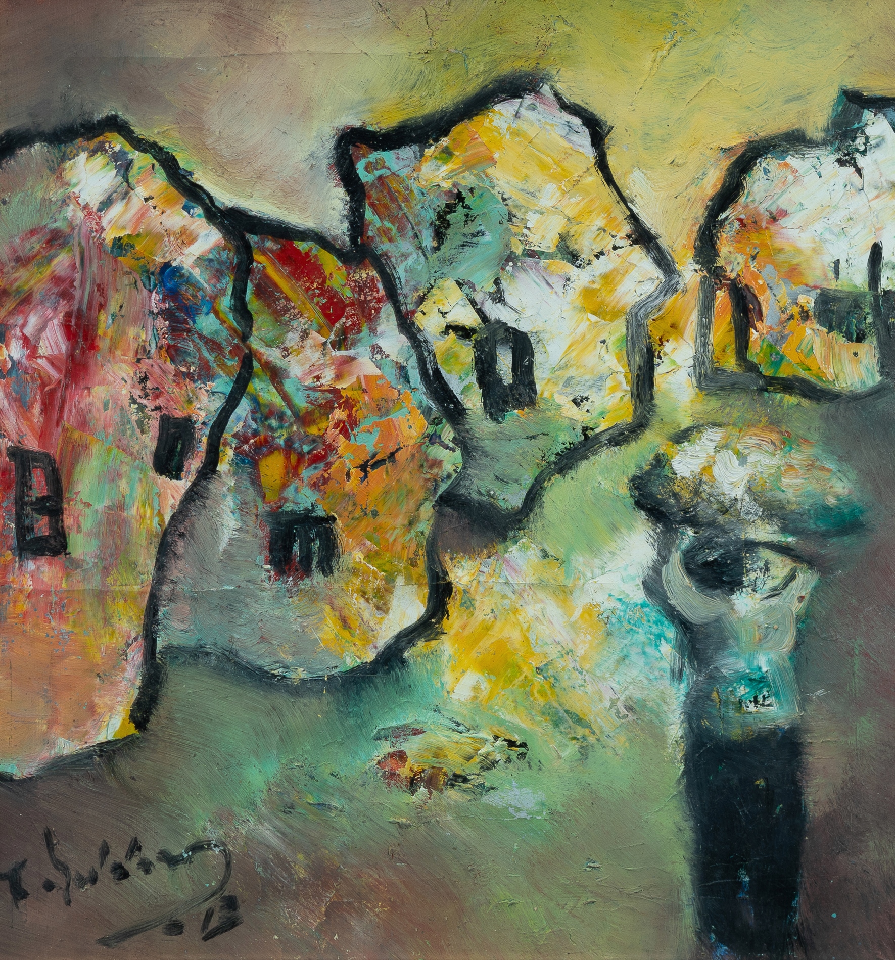 Artist Unknown, Signed Village Scene Signed illeg. lower left. Oil on Card 36.5x34.5cmEstimate $50-120