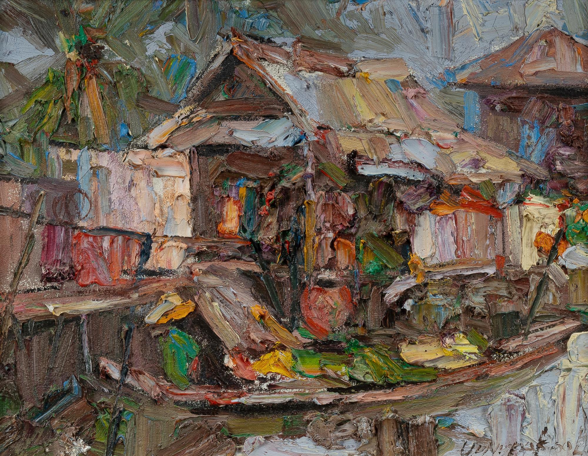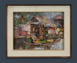 South-east Asian School River Village Signed possibly 'Yunypat__' Oil on Canvas 30x40cmEstimate $80-150