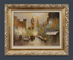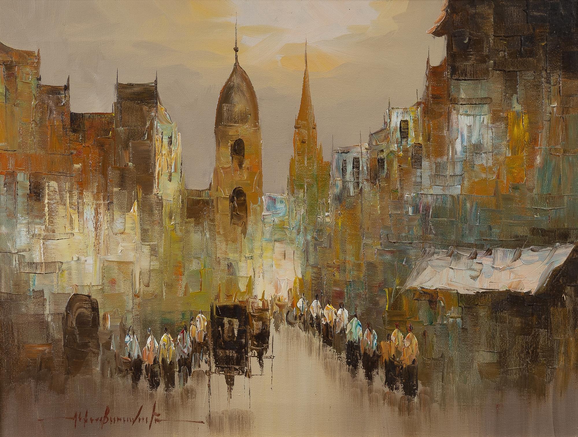 BUENAVENTURA, Alfredo (Philippines 1942-1982) Busy Street, Philippines. Oil on Canvas 44.5x60cmEstimate $200-400