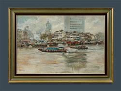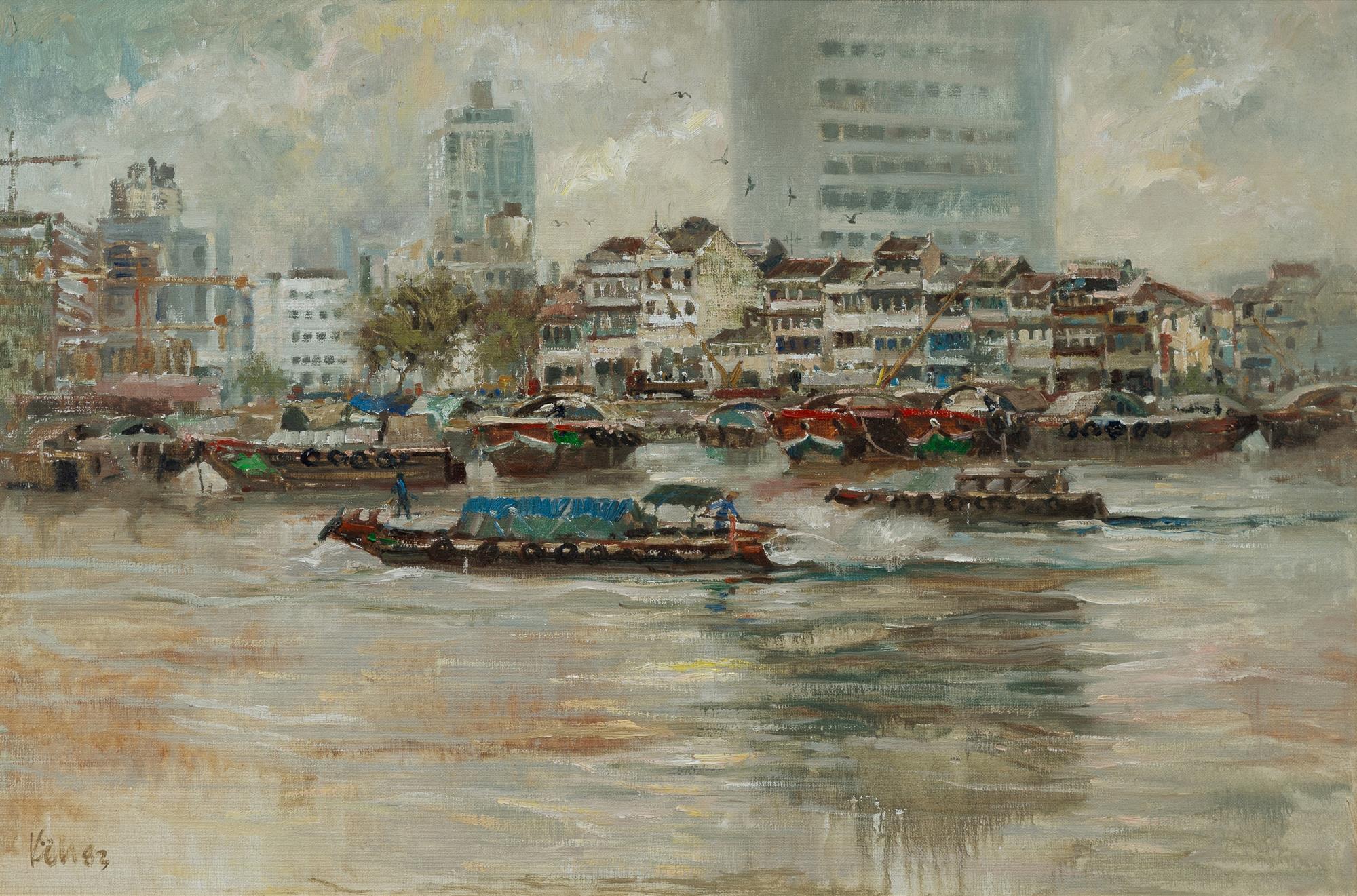 KOEH, Sia Yong (Singapore b.1938) Singapore River, 1983. Signed lower left. Oil on Canvas 59x90cmEstimate $3,000-5,000