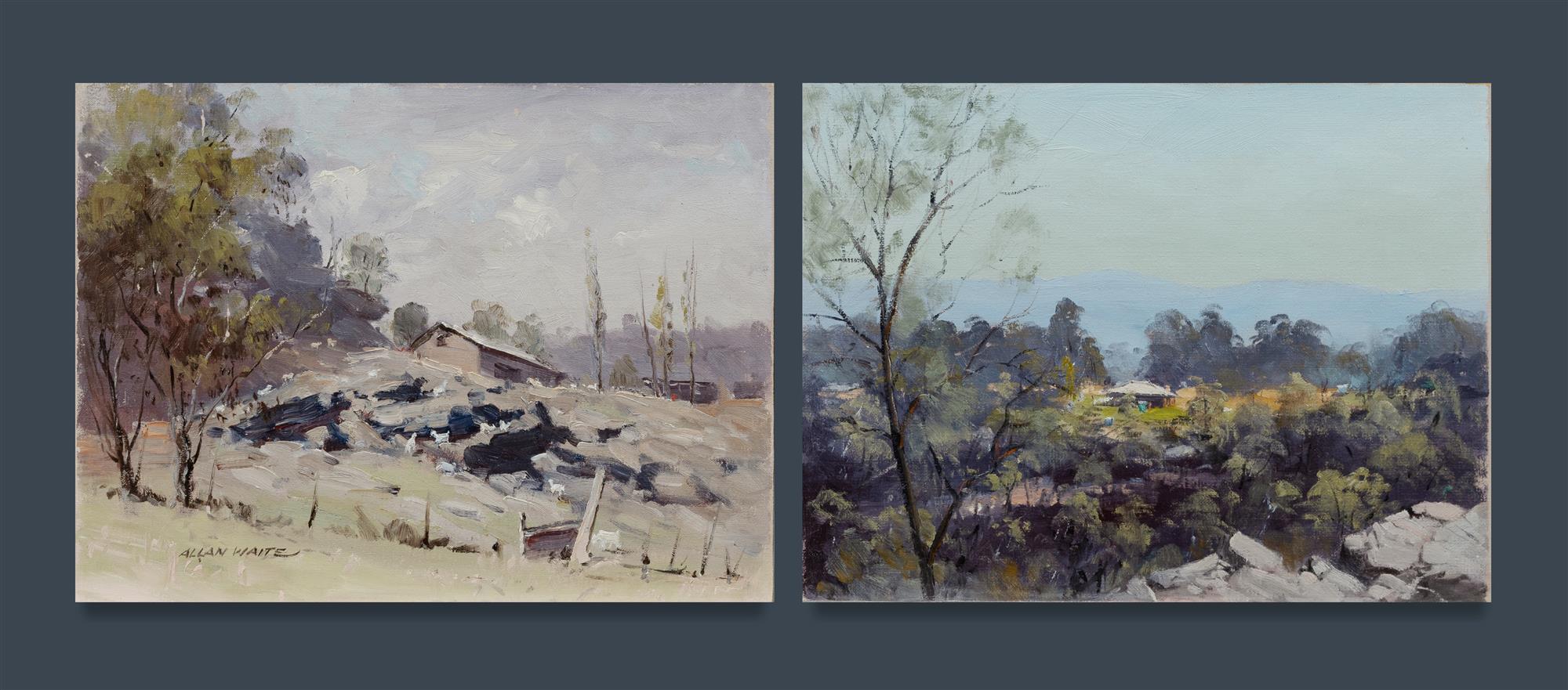 WAITE, Allan (1924-2010) (2) 'White Goats, Oxford Falls' and 'The Butcher's House, Glenorie' Oil on Canvas Board (2) 30x40cm (each)Estimate $80-150