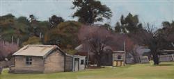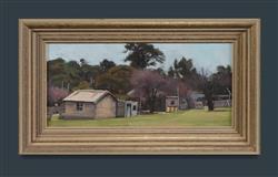 BLANCHARD, Brian (1934-2015) Pine Trees at Berrima [NSW], c.2006. No signature apparent but titled verso, with cat no.7 and 2006 inscribed. Oil on Panel 19.5x43cm PROVENANCE: Family of the Artist.Estimate $150-300