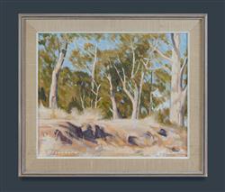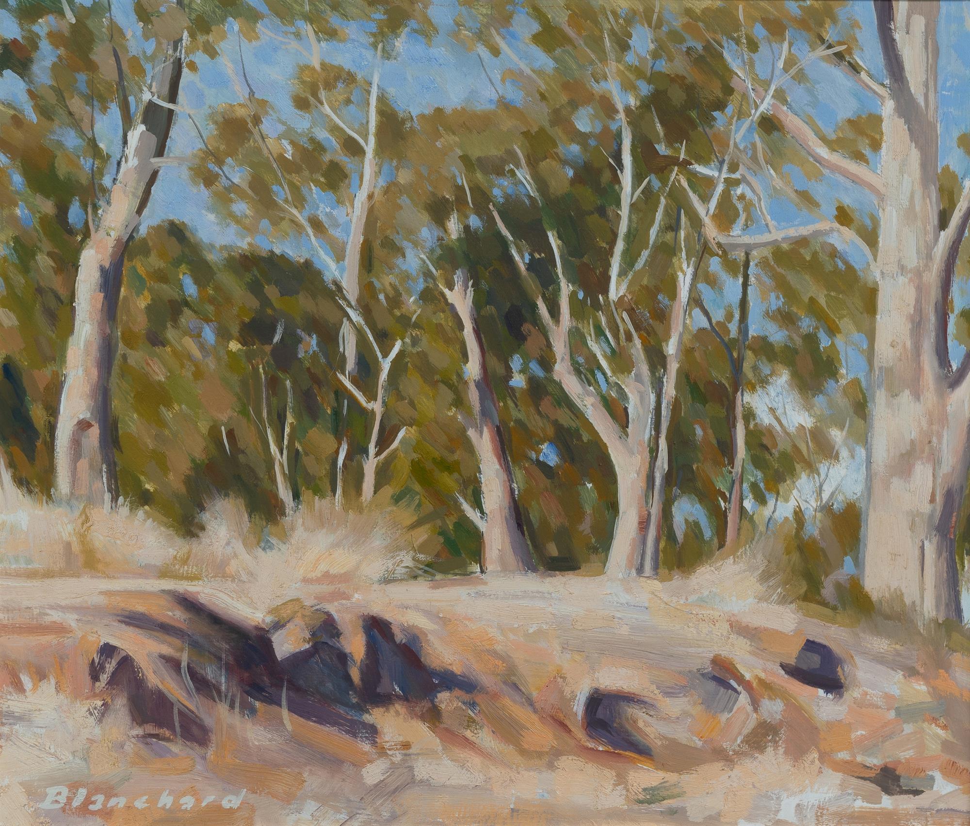 BLANCHARD, Brian (1934-2015) 'Trees and Rough Ground' Signed lower left; artist label verso. Oil on Board 49x59cm PROVENANCE: Family of the Artist.Estimate $200-400