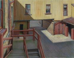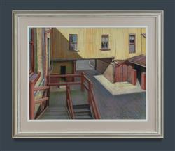 BLANCHARD, Brian (1934-2015) 'Courtyard and Stairs' Signed lower right. Inscribed verso: cat no. 9, 2006. Pastel 54x68.5cm PROVENANCE: Family of the Artist.Estimate $200-400