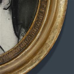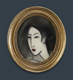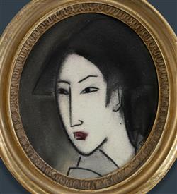 DICKERSON, Robert (1924-2015) Geisha Signed lower right. Pastel & Charcoal 14x11.5cm (oval) PROVENANCE: Family of the artist.Estimate $800-1,200