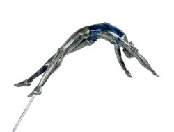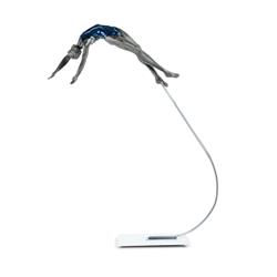 SEFFRIN, Nickolaus (German/Australian b.1931) 'Into the Blue' Initialled 'N' to base. Accompanied by artist's drawings and assembly instructions. Mild Steel with Chrome-plating, Powdercoating & Applied Colour 135x100x30cm PROVENANCE: Adrien Seffrin, son of the artist.Estimate $1,500-3,000