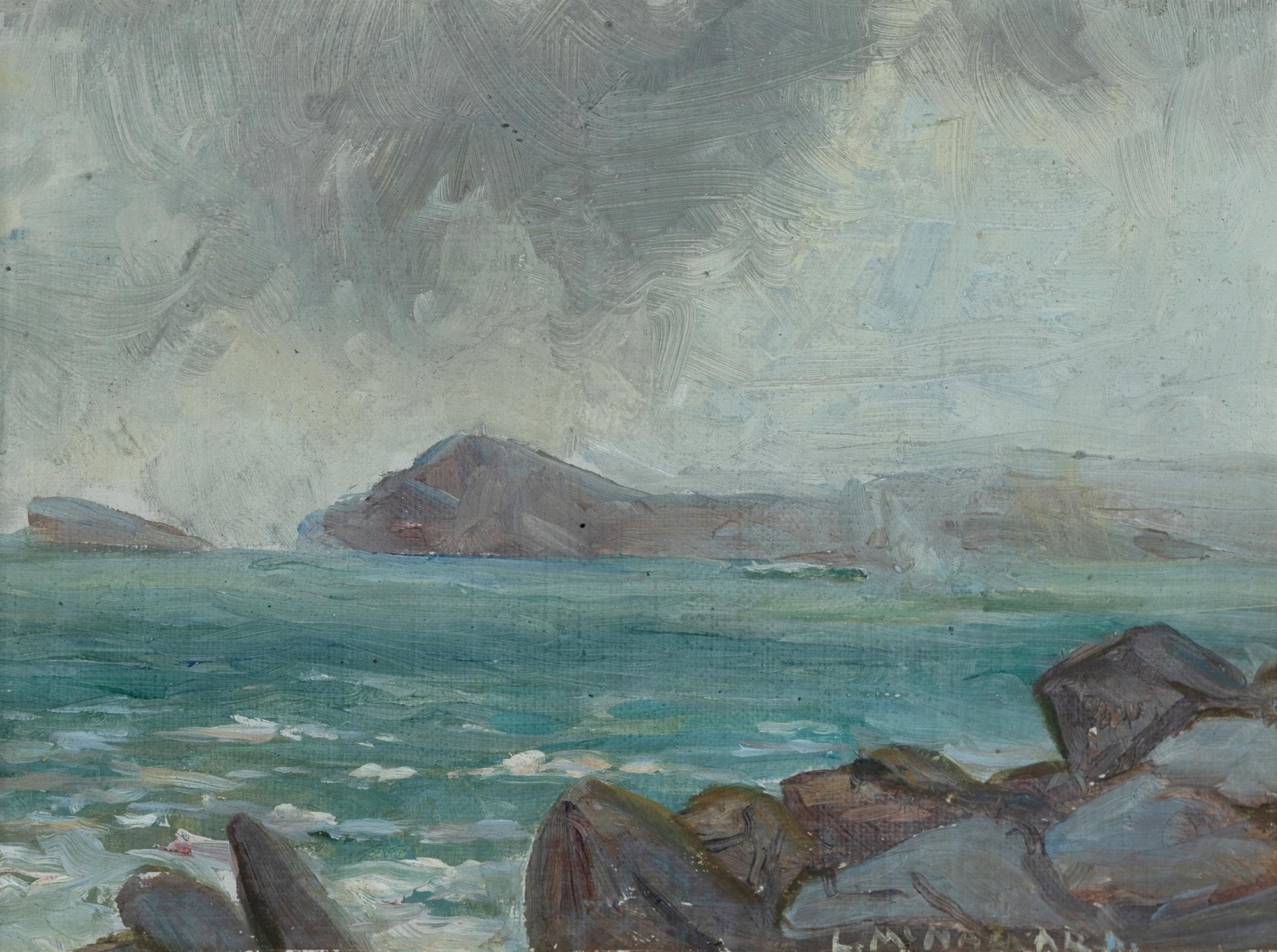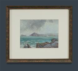 McNAMARA, Leila Constance (1894-1973) Coastal View Signed lower right. Canberra framemaker label verso. Oil on Card (?) 14x18cm PROVENANCE: Estate of Mary Beatrice Hoyle, niece of the artist.Estimate $100-200
