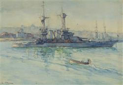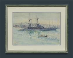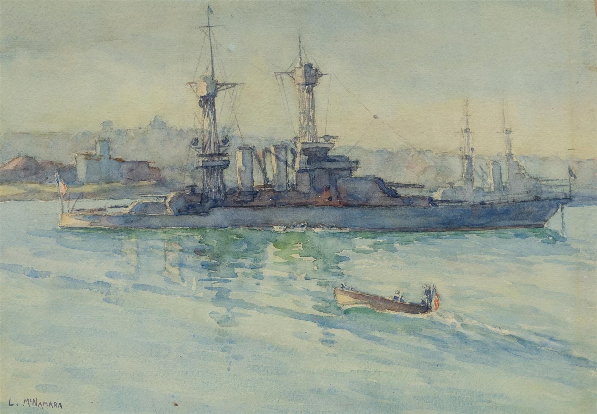 McNAMARA, Leila Constance (1894-1973) 'Pt. Adelaide - Warship W.W.II' Signed lower left; titled verso. W/Clr 27x38cm PROVENANCE: Estate of Mary Beatrice Hoyle, niece of the artist.Estimate $180-350