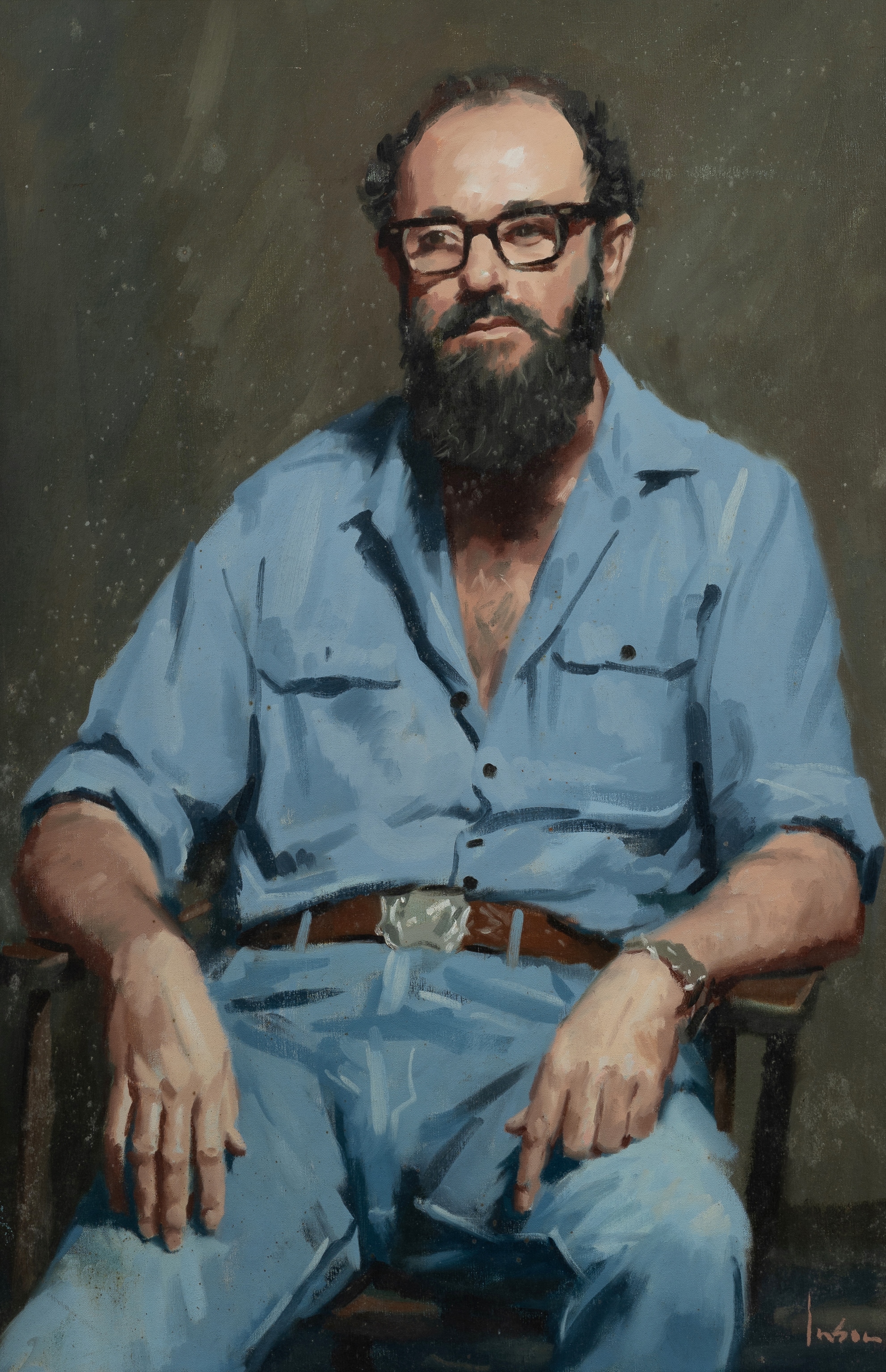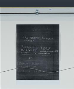 INSON, Graeme (1923-2000) 'Tony Morphett,' 1972. The subject (1938-2018) was a well known Australian screenwriter. Inscribed verso as an Archibald Prize finalist for 1972. Oil on Canvas on Board 104x69cm