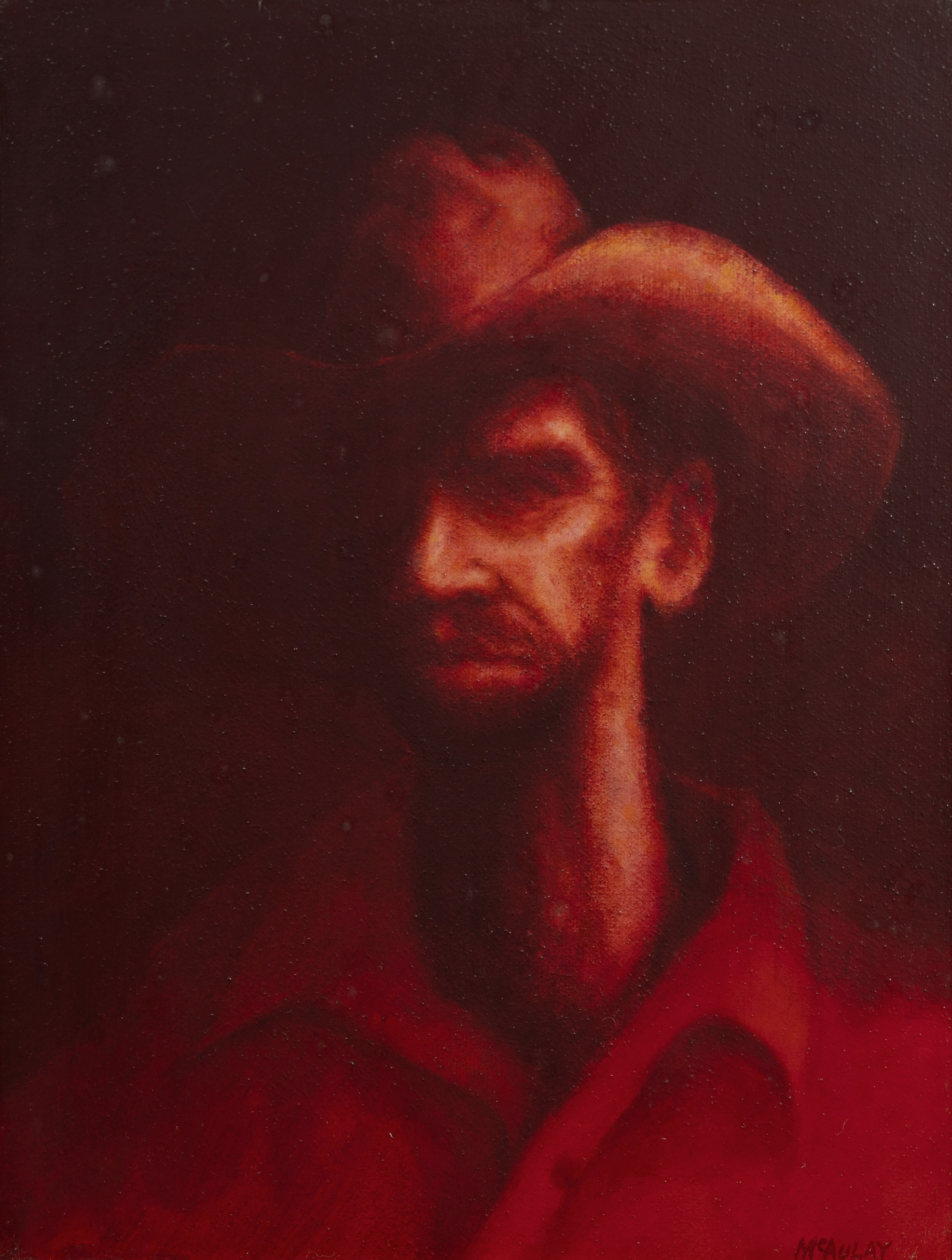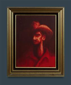 McAULAY, Tom (b.1946) Stockman Oil on Board 44.5x34cm PROVENANCE: Estate Late Carl Segal, Sydney.Estimate $300-500