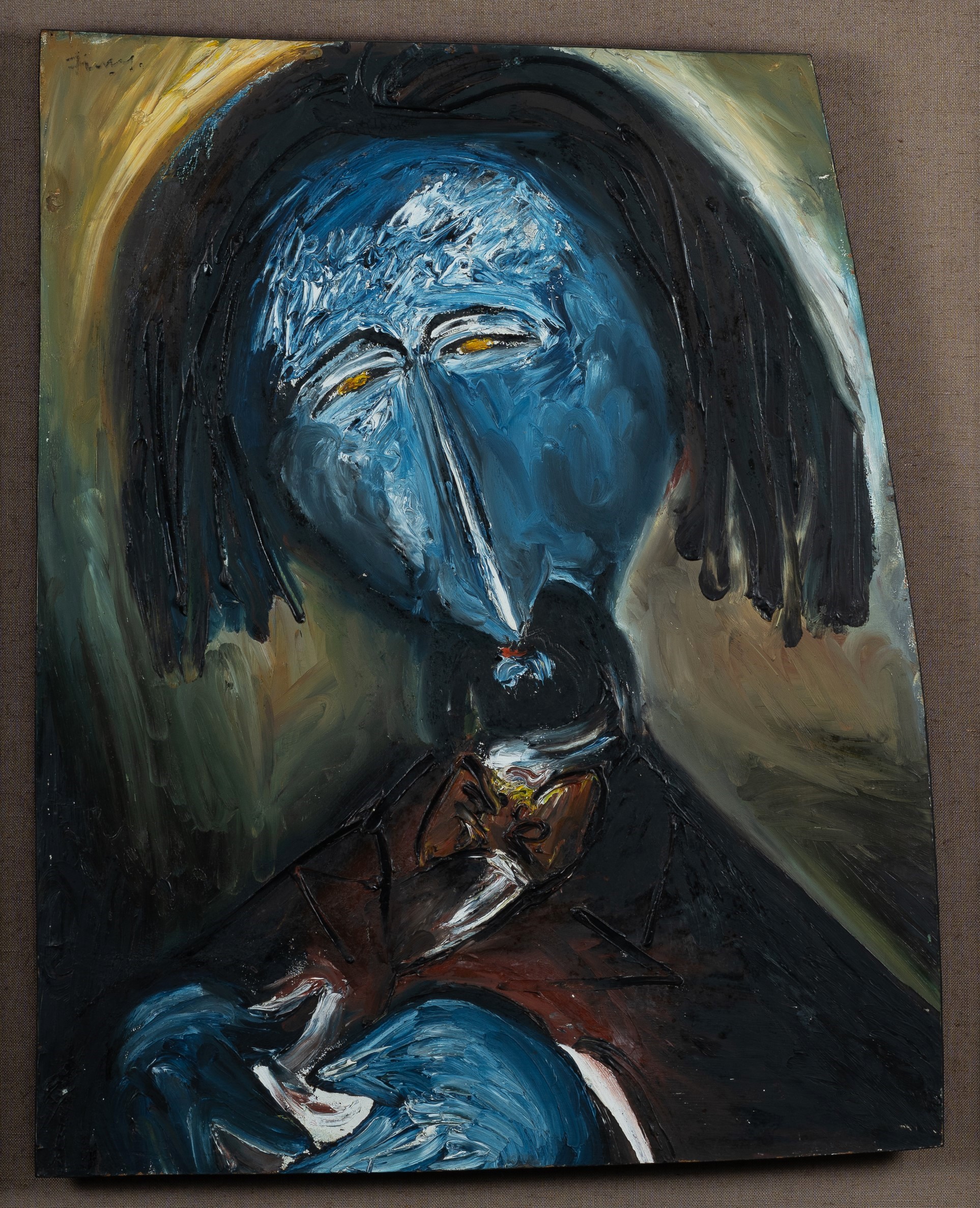 FINEY, George (1895-1987) 'Portrait of Saint-Saens' Signed upper left. Original label verso. Oil on Board 67x53cm (irreg.) PROVENANCE: Estate Late Carl Segal, Sydney.Estimate $300-600