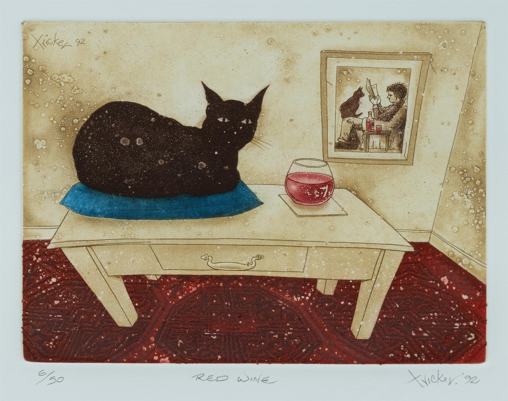 TRICKER, Gary (New Zealand b.1938) 'Red Wine,' 1992. Colour Etching 6/50 16x20cm (plate) 36x37.5cm (sheet)Estimate $100-200
