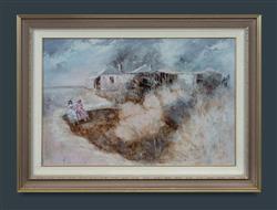 NEWMAN, Anita (b. 1946) Best Friends Sitting Outside Country Homestead Oil on Board 52x79cmEstimate $100-200