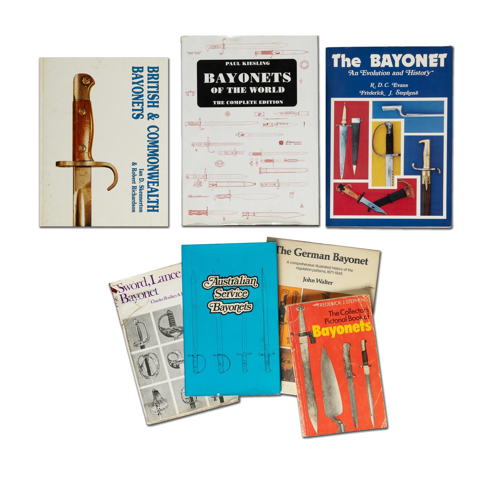 BOOKS (7), Seven Volumes about Bayonets Including Skennerton, Ian D. 'Australian Service Bayonets', limited edition #649/2000, self published, QLD 1976, hardcover with dust wrapper and plastic overlay. 31x21cm (largest)