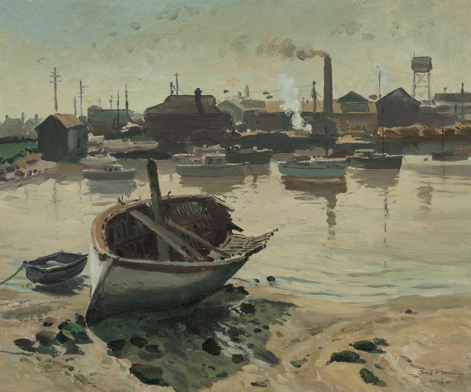 McNAMARA, Frank (1916-1995) Newcastle Harbour, March 1948. Signed lower right. Oil on Canvas on Board 47x57cm PROVENANCE: Davidson Auctions, Sydney, 20th October 2012 (lot 287); Davidson Auctions, Sydney, 24th May 2020 (lot 72)Estimate $300-500