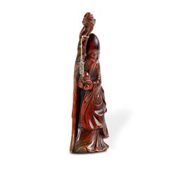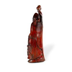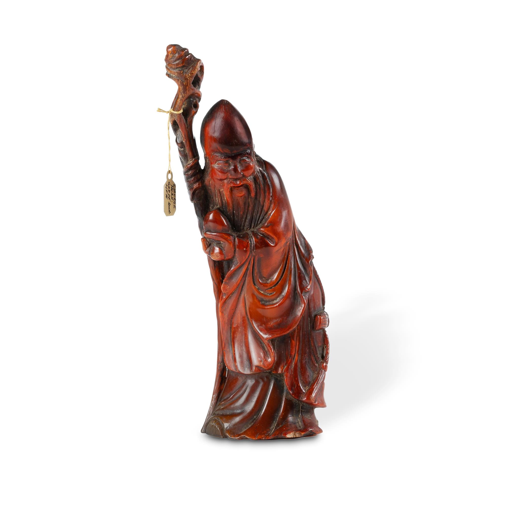 Chinese Qing Dynasty Buffalo Horn Carving of Shoulao Holding his staff and peach. (H20cm) PROVENANCE: From the collection of the late Warren MallardEstimate $80-150