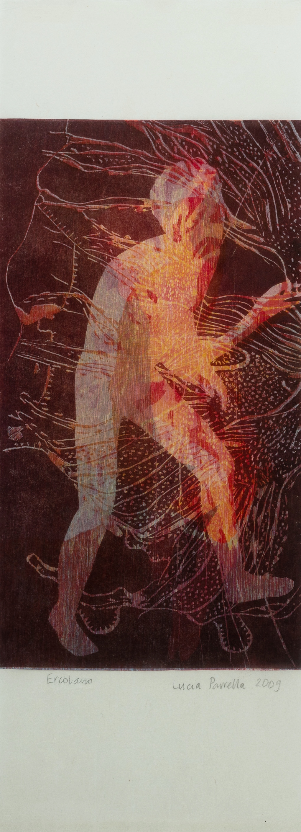 PARRELLA, Lucia (b.1996) 'Ercolano,' 2009. Woodcut & Stencil 40x22.5cm (image) 52x22.5cm (sheet)Estimate $60-100