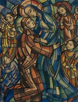 Attrib. SMITH, Eric (1919-2017) Stained Glass Window Design Inscribed 'E Smith' Gouache & Charcoal 27x20.5cmEstimate $300-500