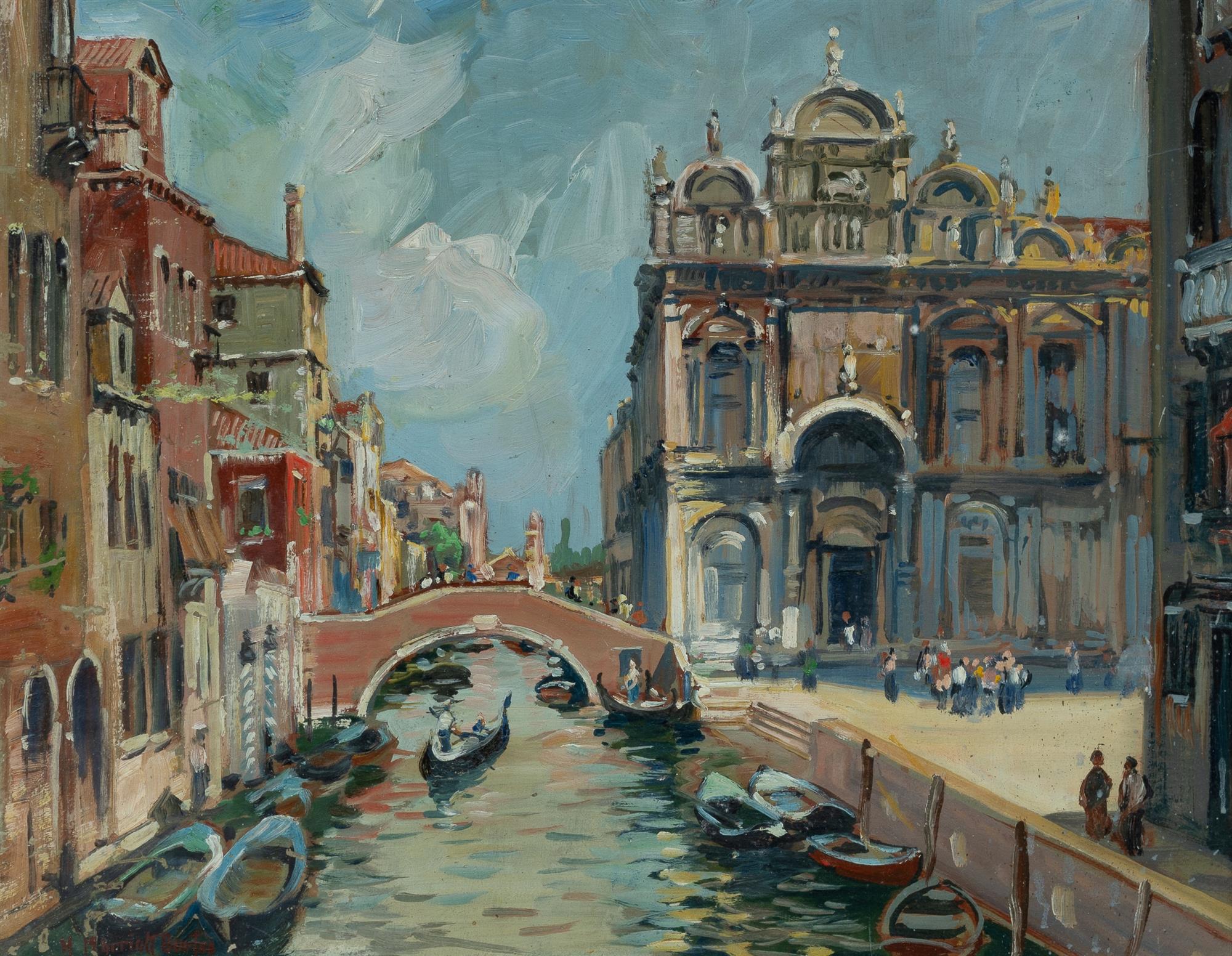 MARRIOTT-BURTON, Harry (British/Australian 1882-1979) 'San Paulo, Venice,' 1953/5. Signed lower left. Oil on Board 33.5x43.5cm