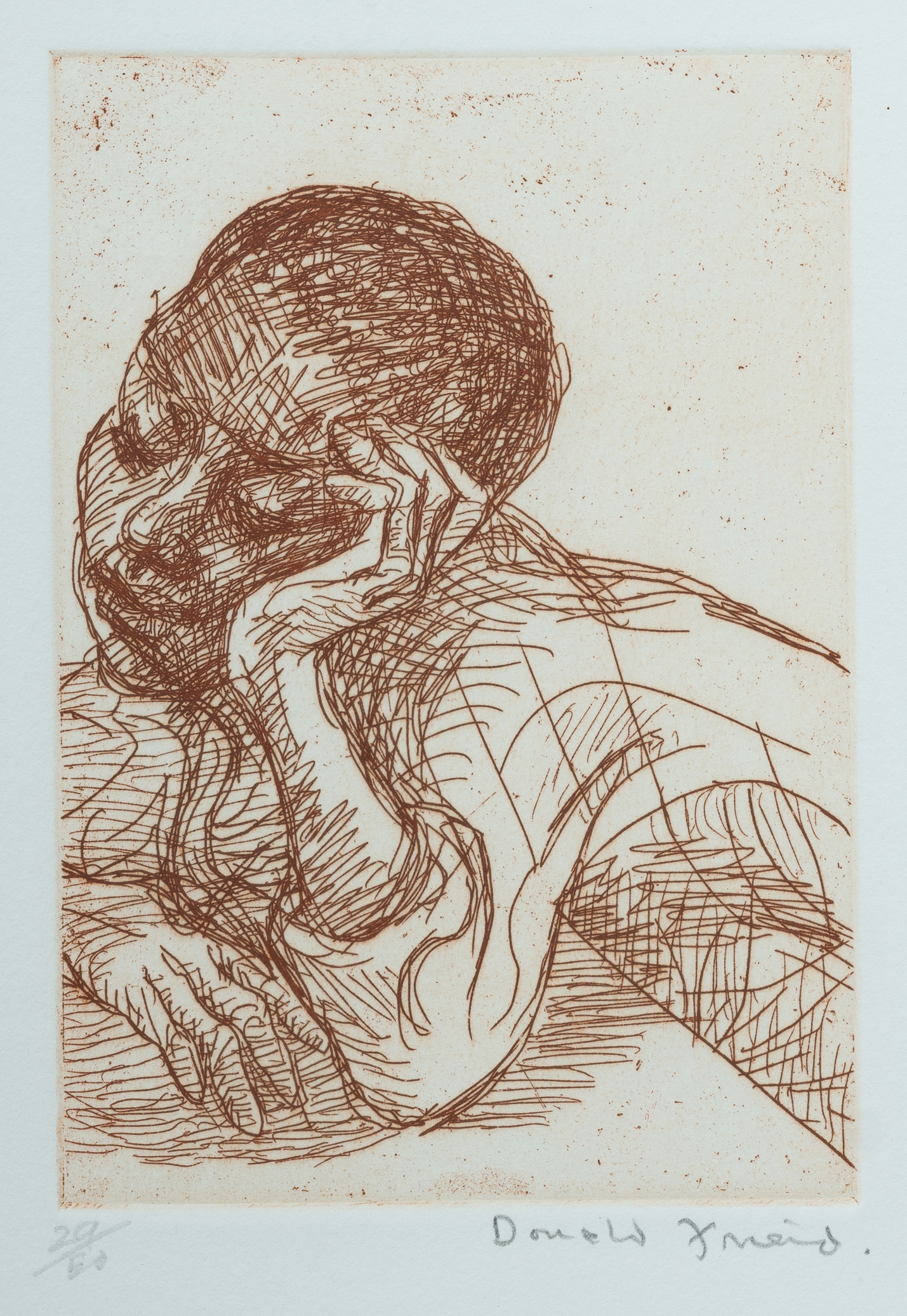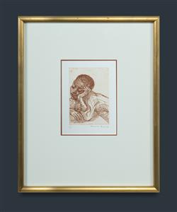 FRIEND, Donald (1915-1989) 'Omu' Etching 29/50 15x10cm (plate) PROVENANCE: Darcy's Restaurant, Paddington, Sydney (proprietor Attilio Marinangeli) This work formed part of the collection on display there prior to its closure.Estimate $70-120