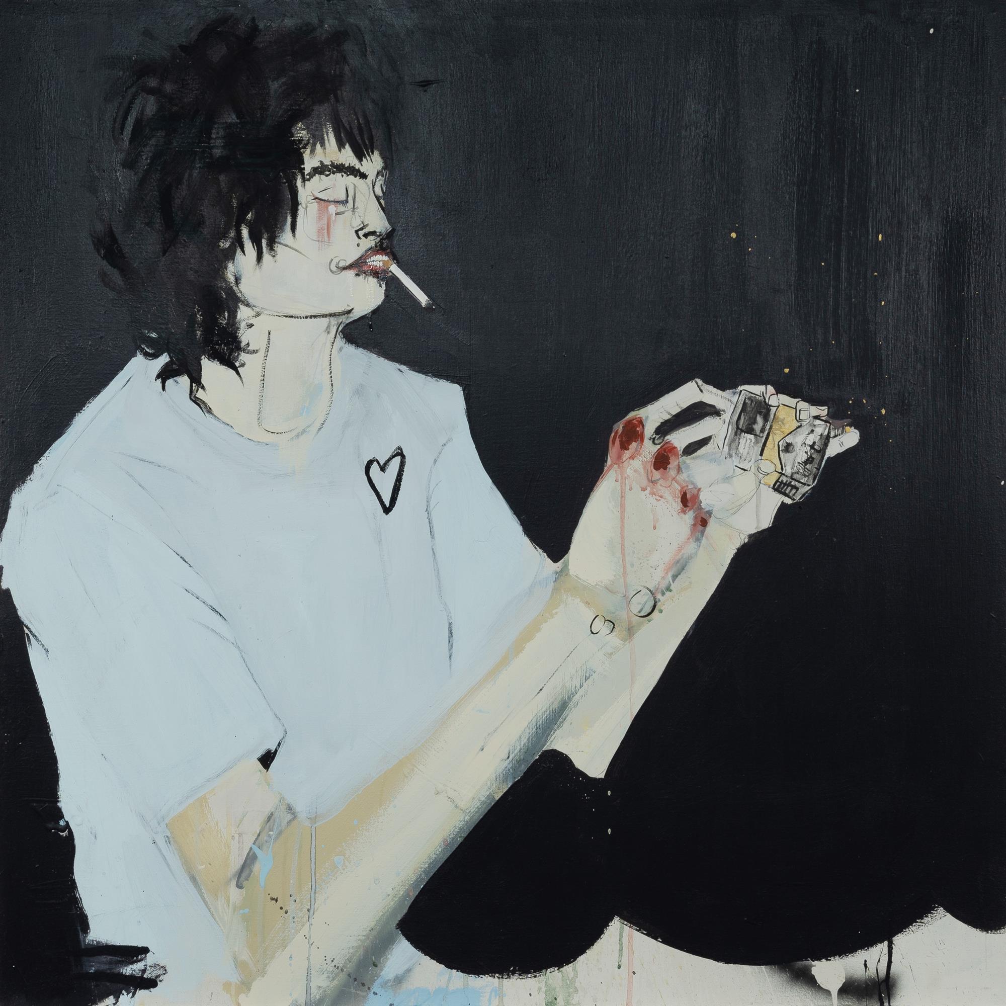 MEDOR, Julian 'Take Another for the Team,' 2008. Ex Schubert Contemporary, Gold Coast (label verso). Mixed Media on Canvas 81x81cm PROVENANCE: Lawsons, Sydney, 18th August 2011 (lot 35)Estimate $300-500
