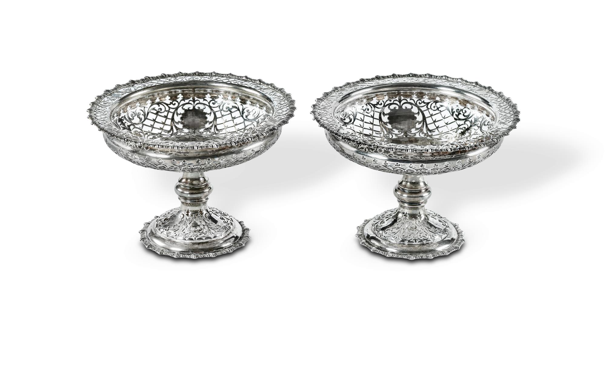 Pr Edward VII Sterling Silver Pierced Comports HM Sheffield 1904, James Dixon & Sons. (H11cm Dia.16cm) W590g (total)