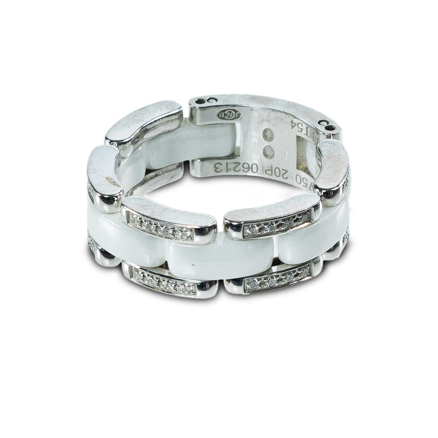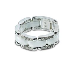 Chanel Ceramic & Diamond Ring Diamond approx. 0.25ct. Size adjustable N1/2 to P (approx)Estimate $1,800-3,000