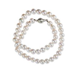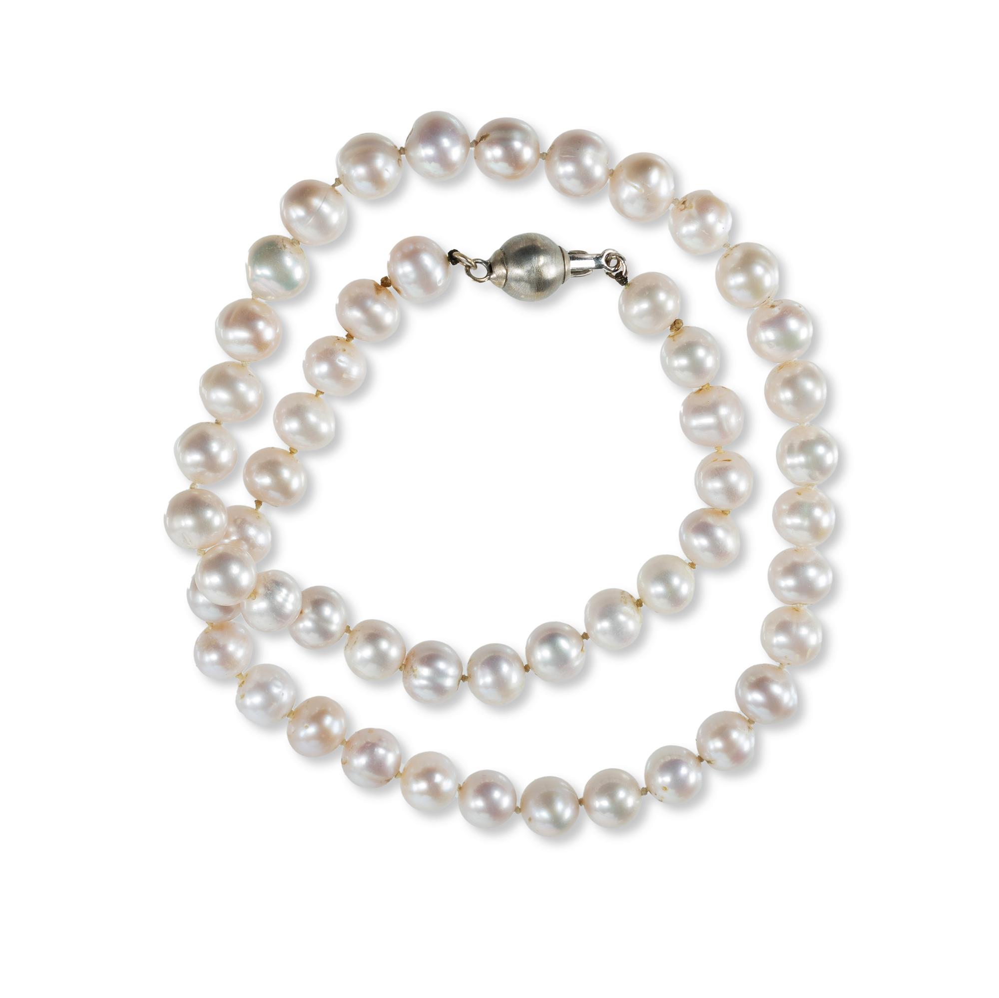 Pearl Necklace with 18ct White Gold Clasp Fifty one 9/9.5mm light pink cultured pearls with 18ct white gold clasp. (L52cm)Estimate $250-450