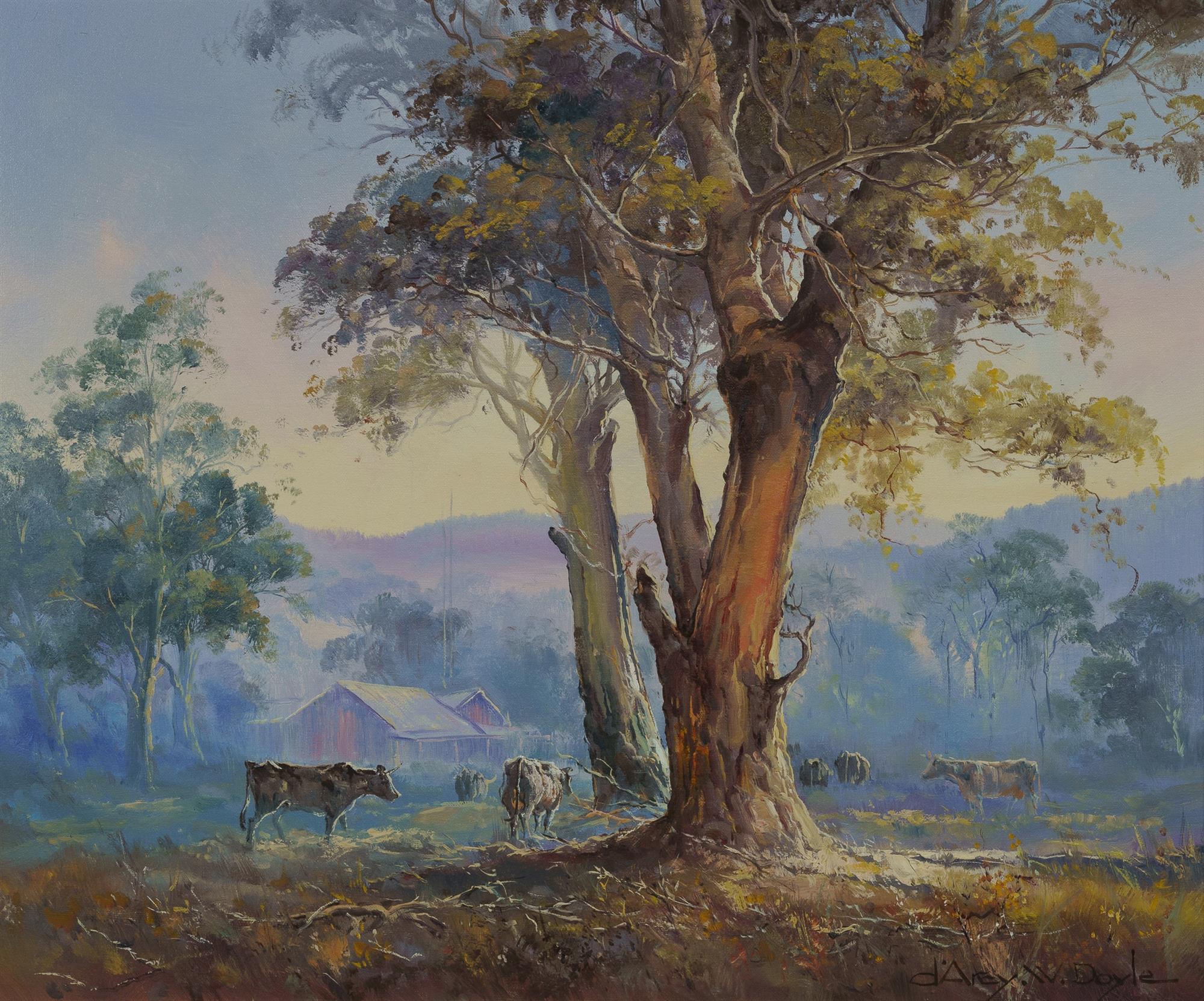DOYLE, d'Arcy (1932-2001) 'Milking Time' Oil on Canvas on Board 50x60cm PROVENANCE: Davidson Auctions, Australian & International Art, 22nd March 2020 (lot 68); private collection, Sydney.Estimate $4,000-6,000