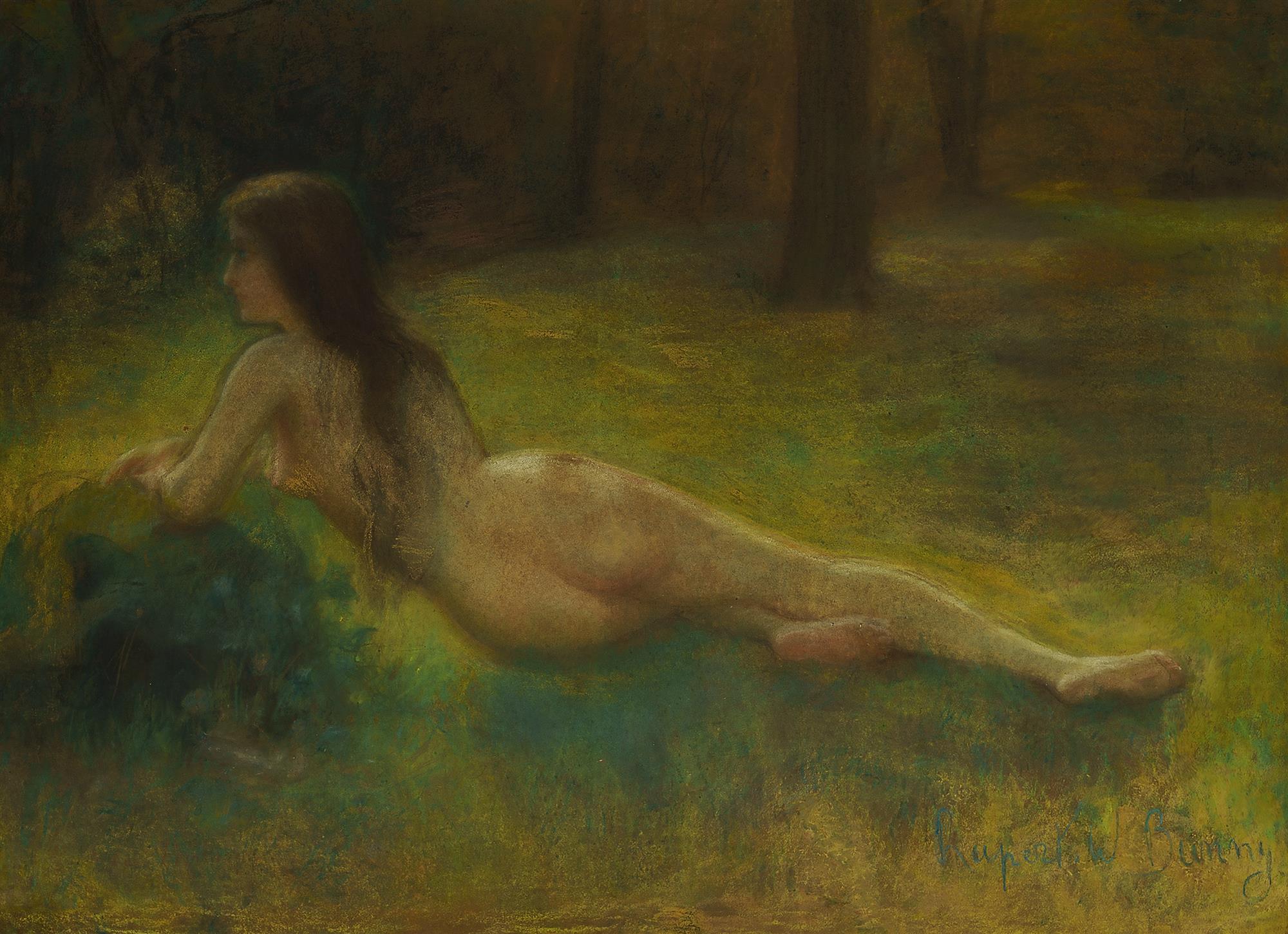Bears Signature Rupert Bunny Nude in Landscape Inscribed 'Rupert W Bunny' lower right. Signature not verified. Pastel on Paper on Linen 70x97cmEstimate $1,000-3,000