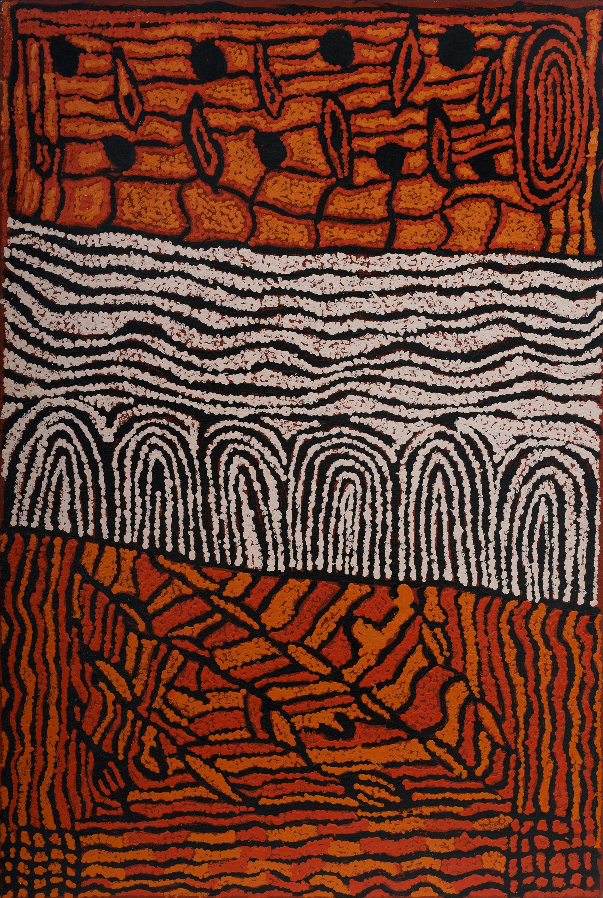 NAPALJARRI, Eileen (Aboriginal b.1956) Untitled (Tjiturrulpa), 2000. Inscribed verso, Papunya Tula Artist Pty Ltd. cat #EN0203274. Accompanied by certificate of authenticity. Acrylic on Linen 91.5x62cmEstimate $600-1,000