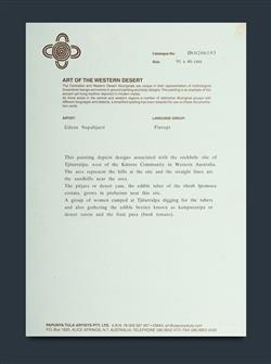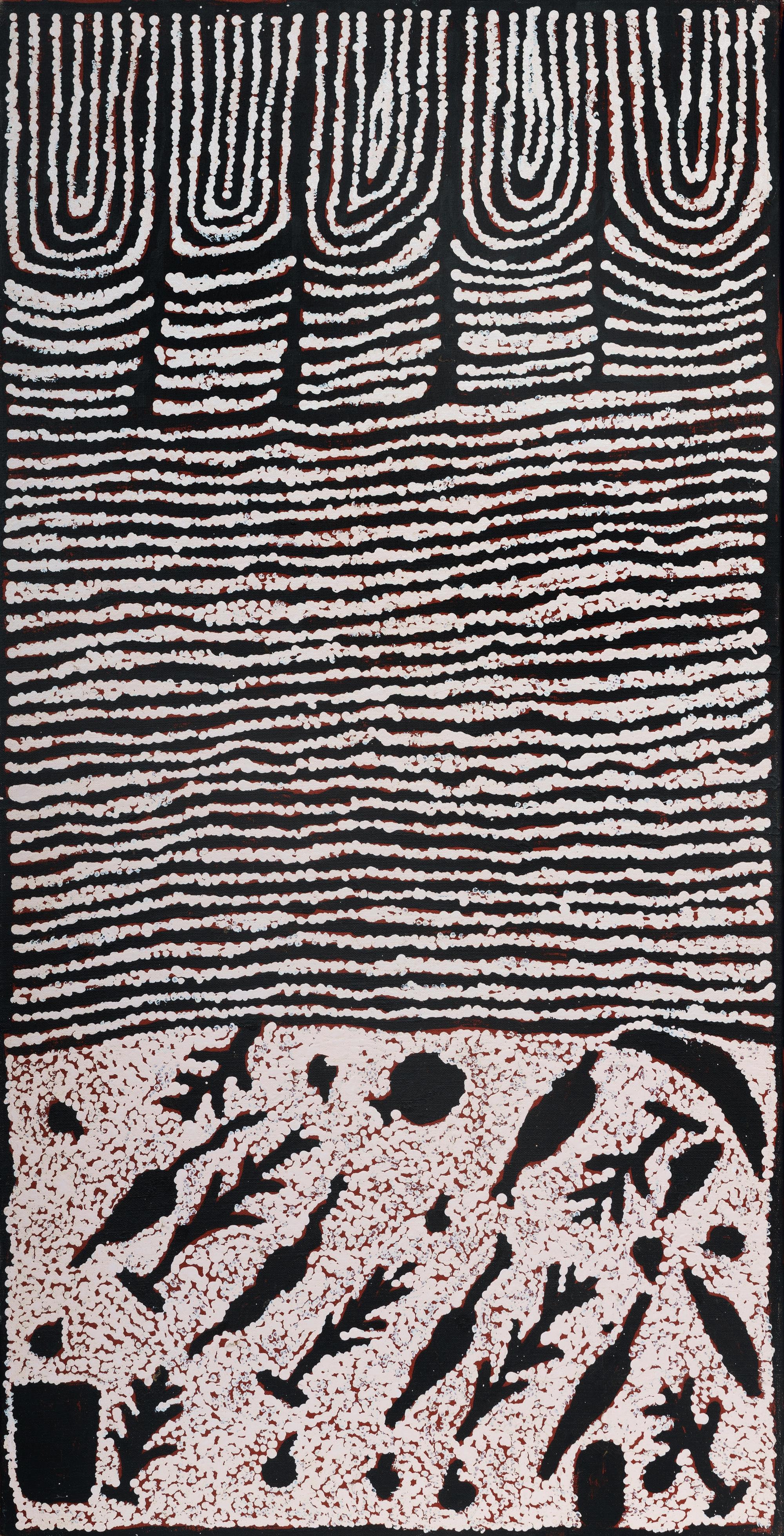 NAPALJARRI, Eileen (Aboriginal b.1956) Untitled (Tjiturrulpa), 2002. Inscribed verso, Papunya Tula Artist Pty Ltd. cat #EN0206193. Accompanied by certificate of authenticity. Acrylic on Linen 91x46cmEstimate $600-1,000