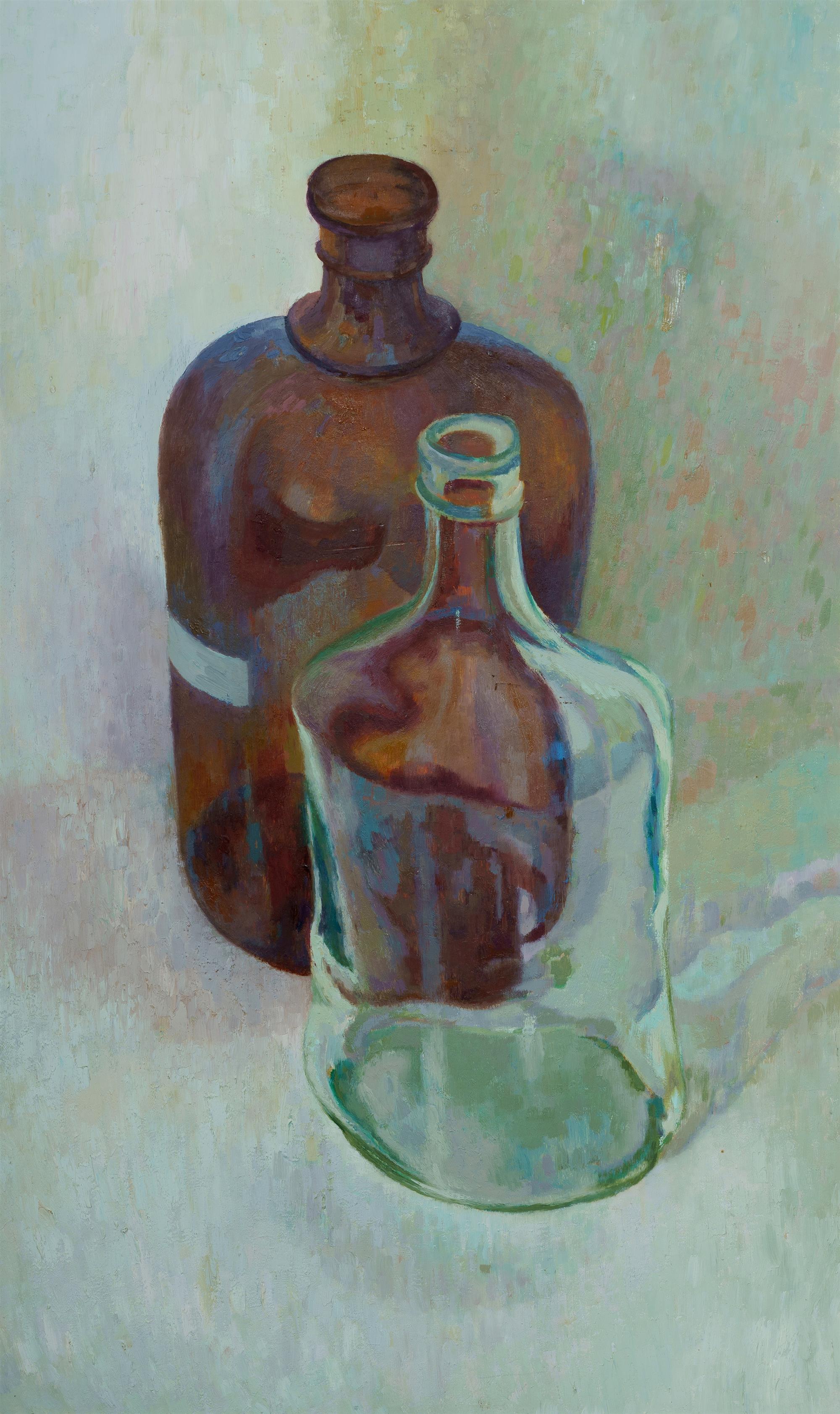 APPLETON, Jean (1911-2003) 'Two Bottles' Unsigned Oil on Board 83x50cm PROVENANCE: The artist's daughter, Elisabeth Green. EXHIBITIONS: 'From the Studio of Jean Appleton (1911-2003)' Artarmon Galleries, Sydney, 3rd - 17th September 2005, cat #12.Estimate $1,000-2,000