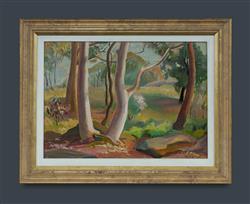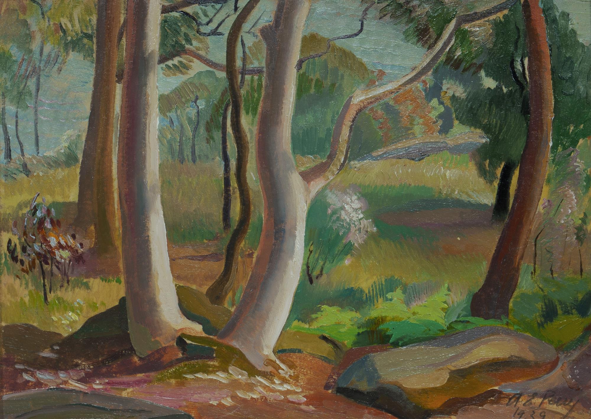 PERRY, Adelaide Elizabeth (1891-1973) 'Foreshore Trees,' 1939. Signed and dated lower right. Oil on Board 24.5x35cmEstimate $1,000-2,000