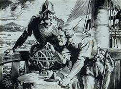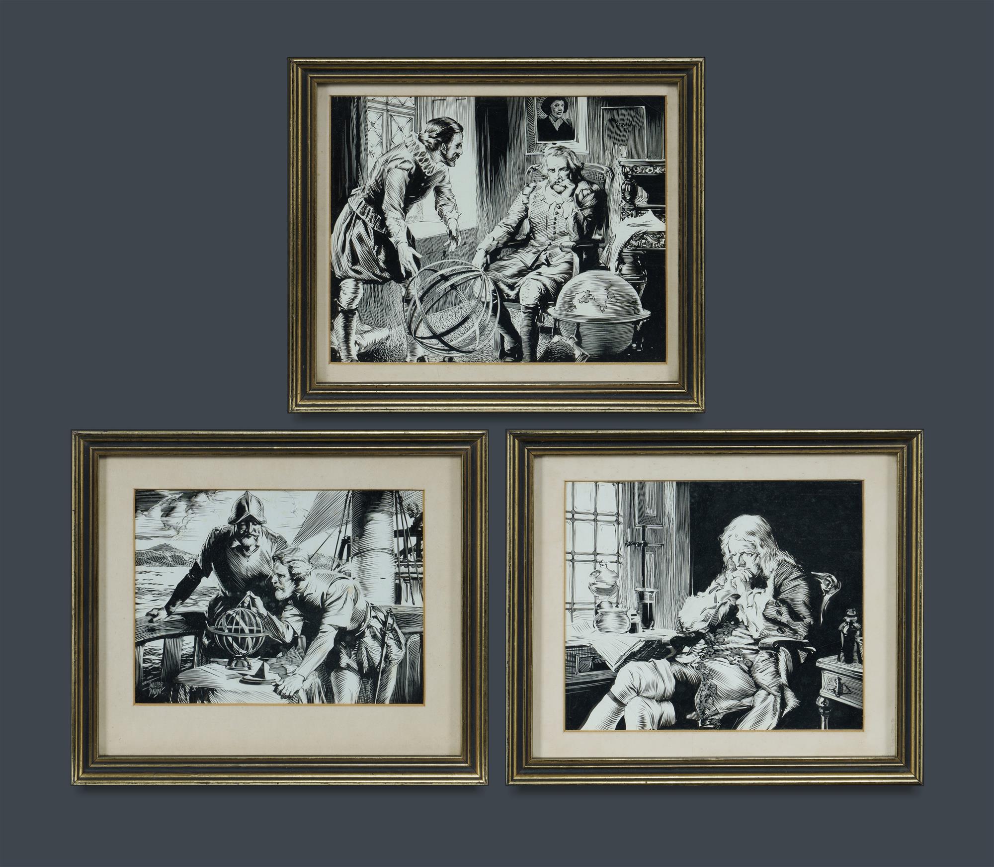 JARDINE, Walter (1884-1970) (3) Maritime Explorers One work signed. Ink on Incised Paper (3) 18x21cm approx. (each) PROVENANCE: The Fred and Elinor Wrobel Collection, Sydney; Estate Late Elinor Wrobel.Estimate $200-400