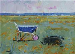 DUPAIN, Rex (b.1954) 'Wheel Barrow,' 1989. Signed lower right. Artmet Ltd, Sydney, label verso. Oil on Paper 46x64cmEstimate $300-450