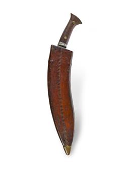 WWII MK2 Kukri by Qeyoom Brothers, Pakistan, 1944. With original leather covered scabbard. L49cm (in scabbard)Estimate $200-300