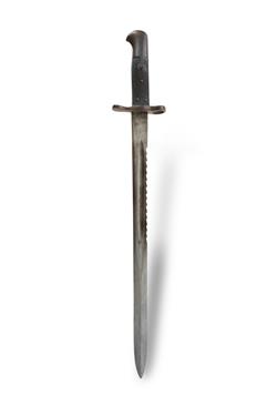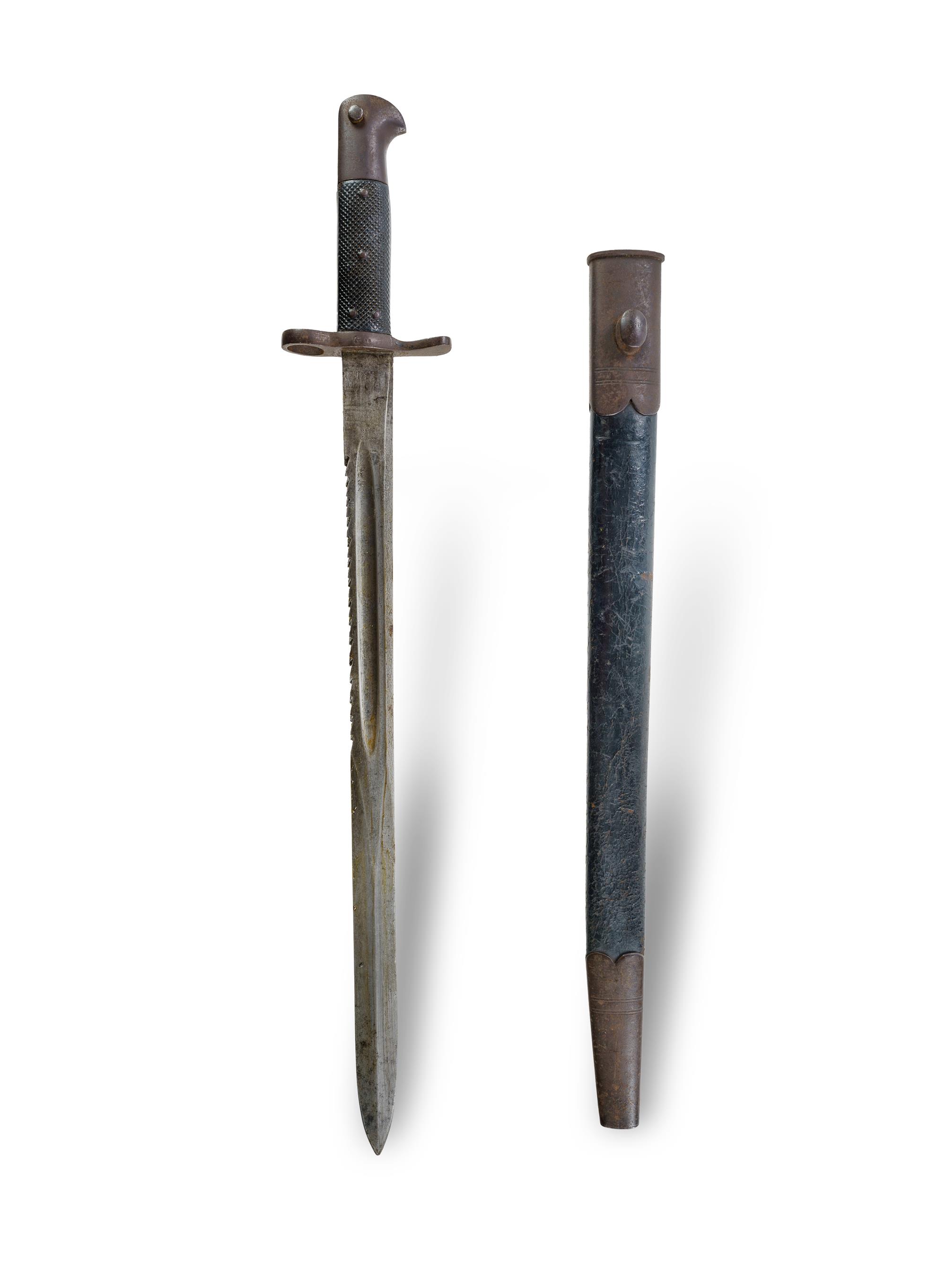 Rare British 1875 Pattern 1st Model Henry Rifle Sawback Bayonet Marked for Weyersberg, Kirschbaum & Co. With original leather and steel scabbard. (L59cm)Estimate $300-600