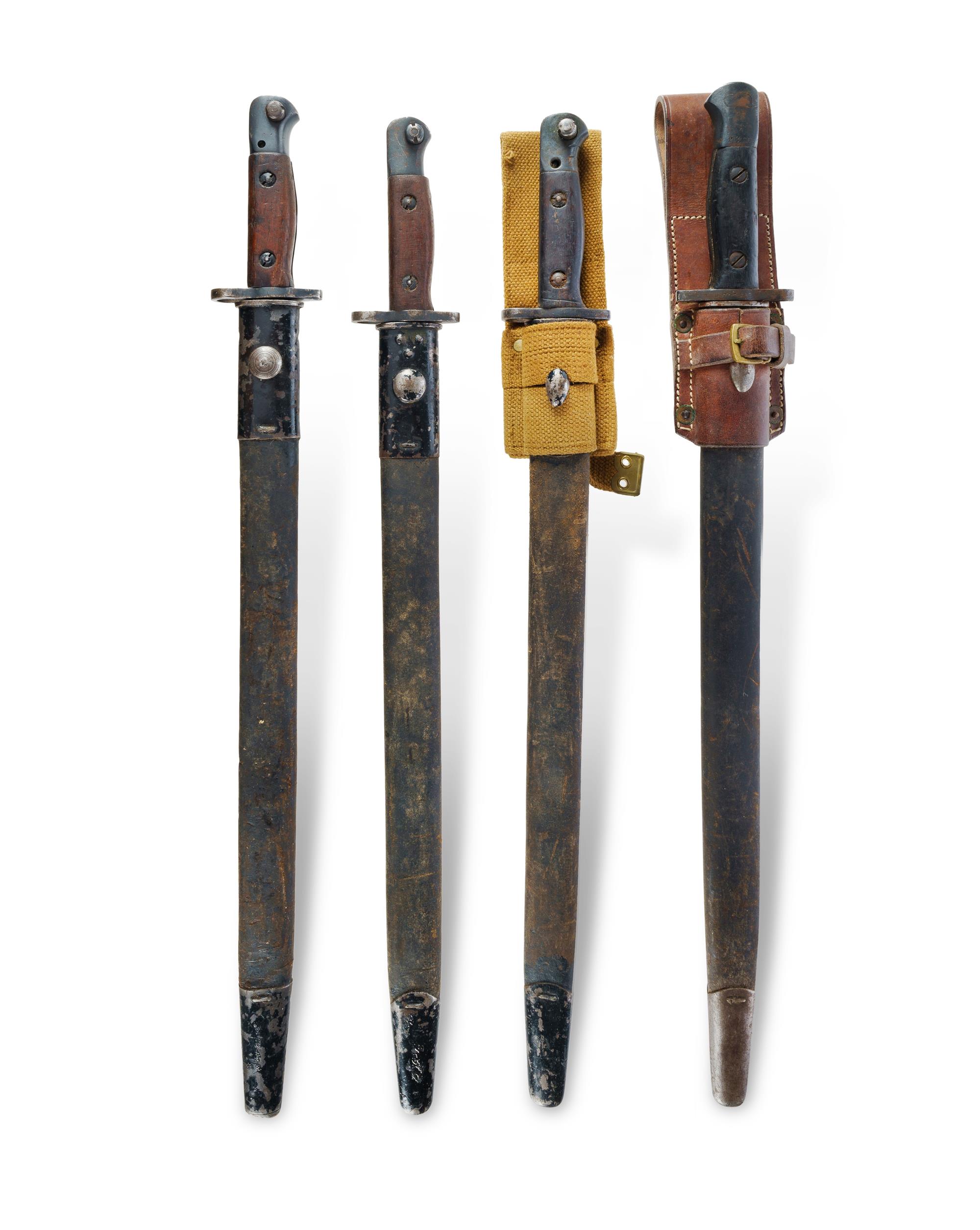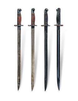 4 Various P1907 Bayonets Includes one Enfield, 1910, one Lithgow, one J. Chapman, and one Vickers.Estimate $300-600