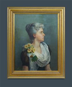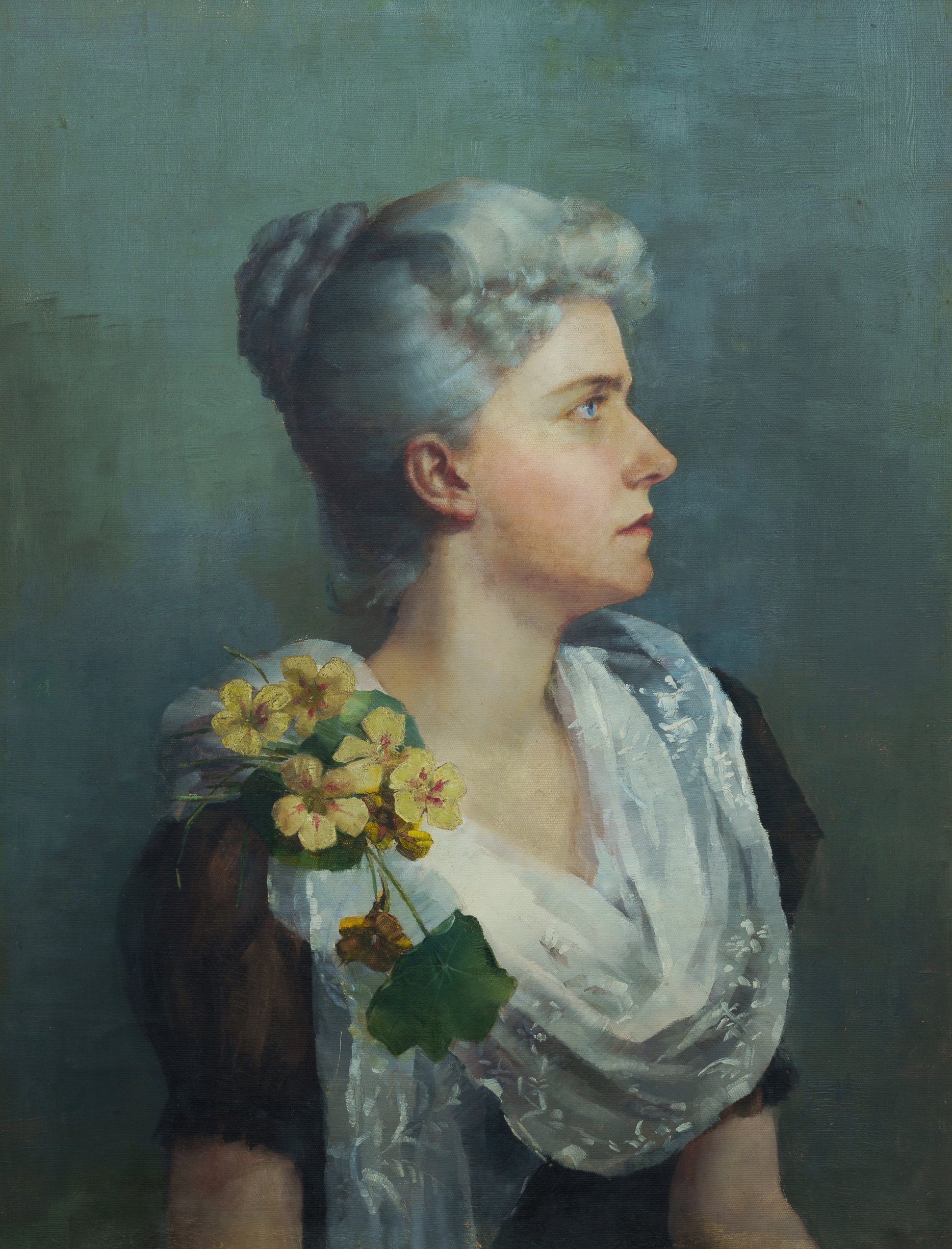 STEPHENS, Ethel Anna (1864-1944) Portrait of Lady with Nasturtiums, 1892. Signed faintly upper left. Oil on Canvas 69x53cm