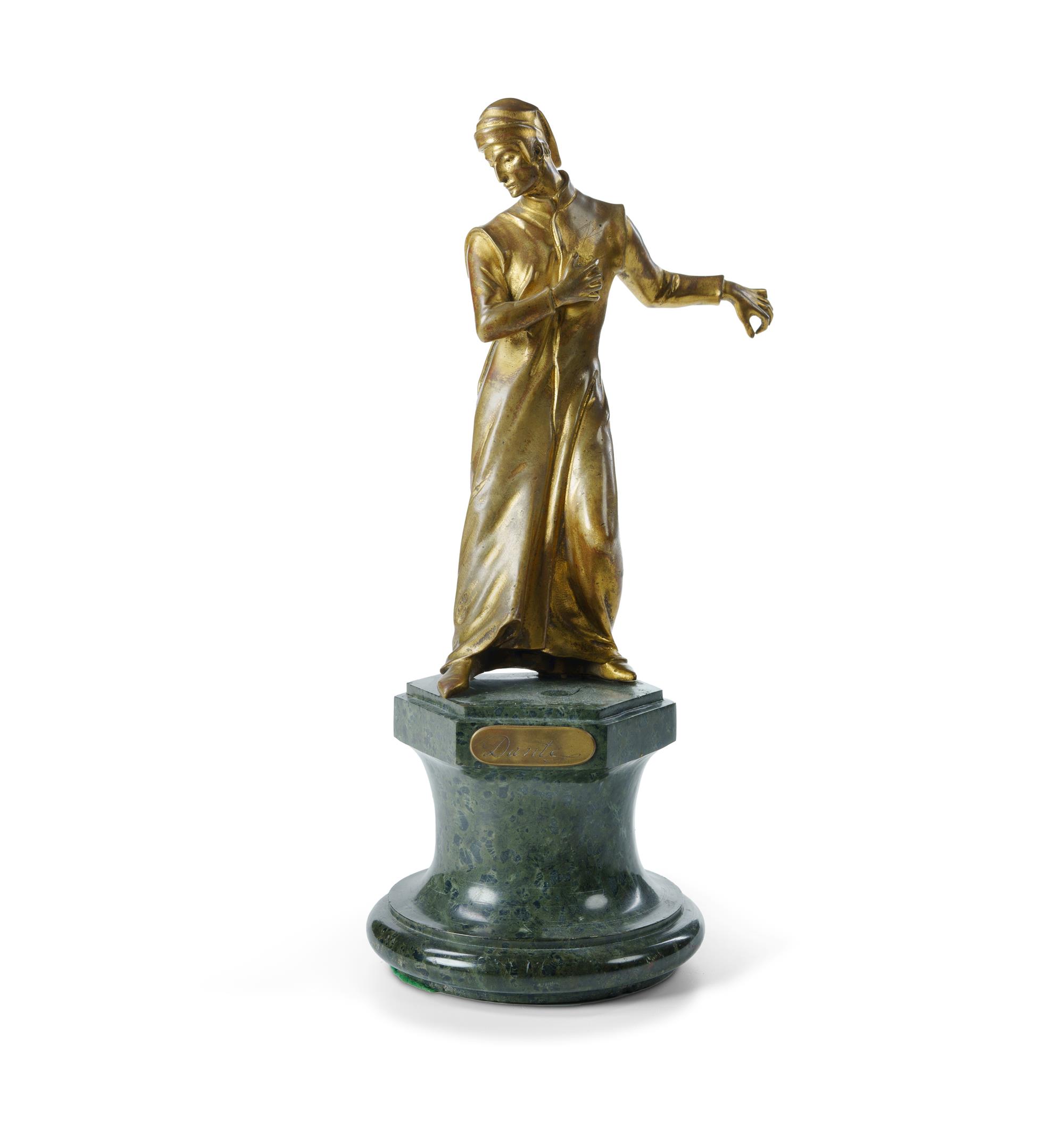 PINEDO, Emile (French 1840-1916) Gilt Bronze Figure 'Dante' Foundry mark verso. On a green marble base. H29.5cmEstimate $1,000-2,000